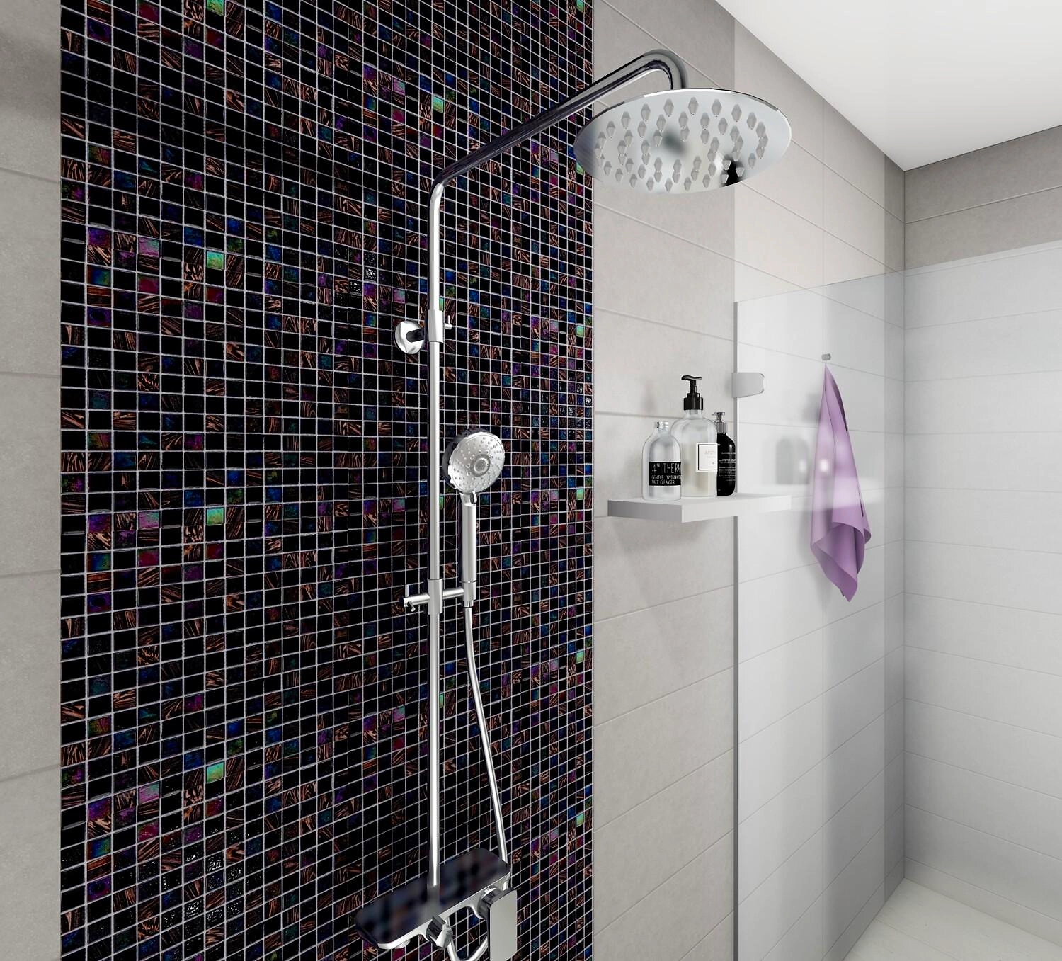 Кубики стеклянные цветные комбинированные из термоплавкого и хрустального стекла для мозаичных работ на основе-сетке из полиэстера, размеры кубиков: 20x20x4 мм, размеры мозаичного полотна: 306x306x4 мм, предназначены для декорирования стен.