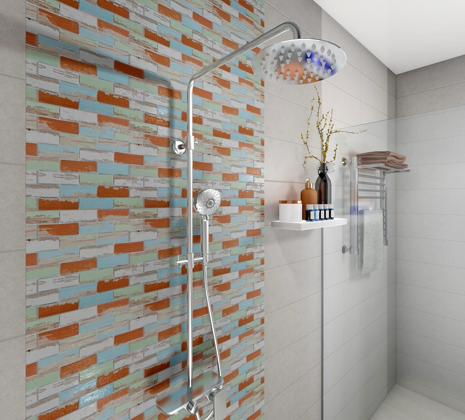 Пластины стеклянные цветные из переработанного стекла для мозаичных работ на основе-сетке из полиэстера, размеры пластин: 31x98x6 мм, размеры мозаичного полотна: 348x262x6 мм, предназначены для декорирования стен.