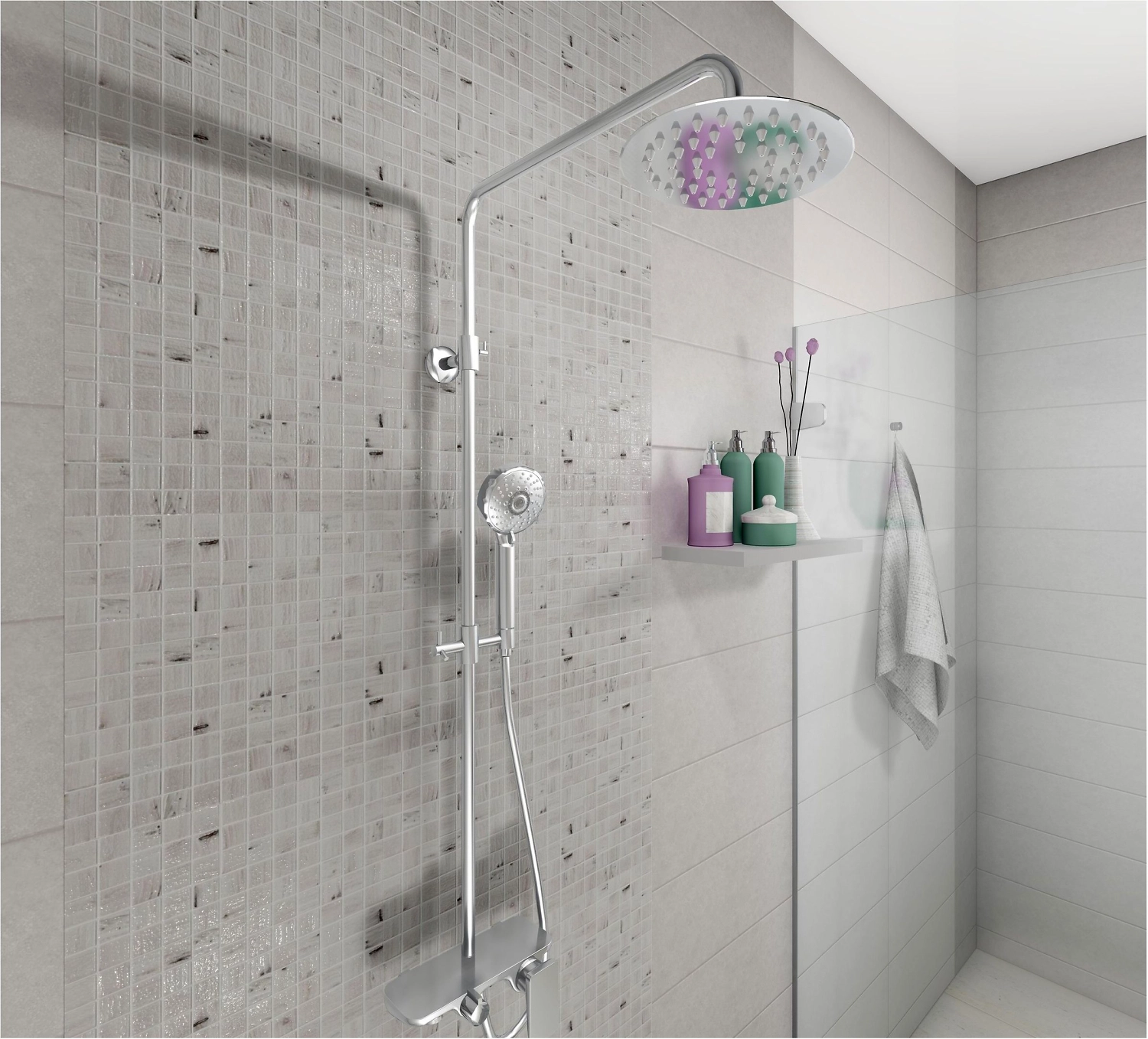 Стеклянная мозаика испанской фабрики Vidrepur в серых оттенках с переливающейся поверхностью. Мозаика подходит для облицовки кухонных фартуков, ванных комнат, зон с повышенной влажностью.
