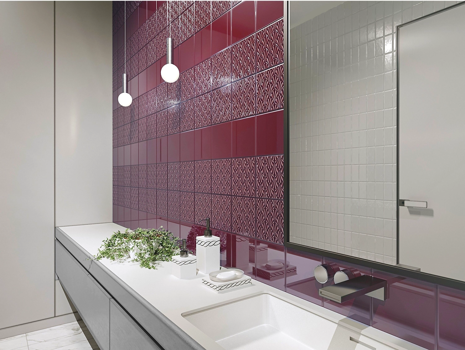 Базовая настенная плитка "BRAM'S" цвета бордо может применяться для отделки кухни и ванной комнаты. Используется для отделки стен в городской квартире, загородном доме.