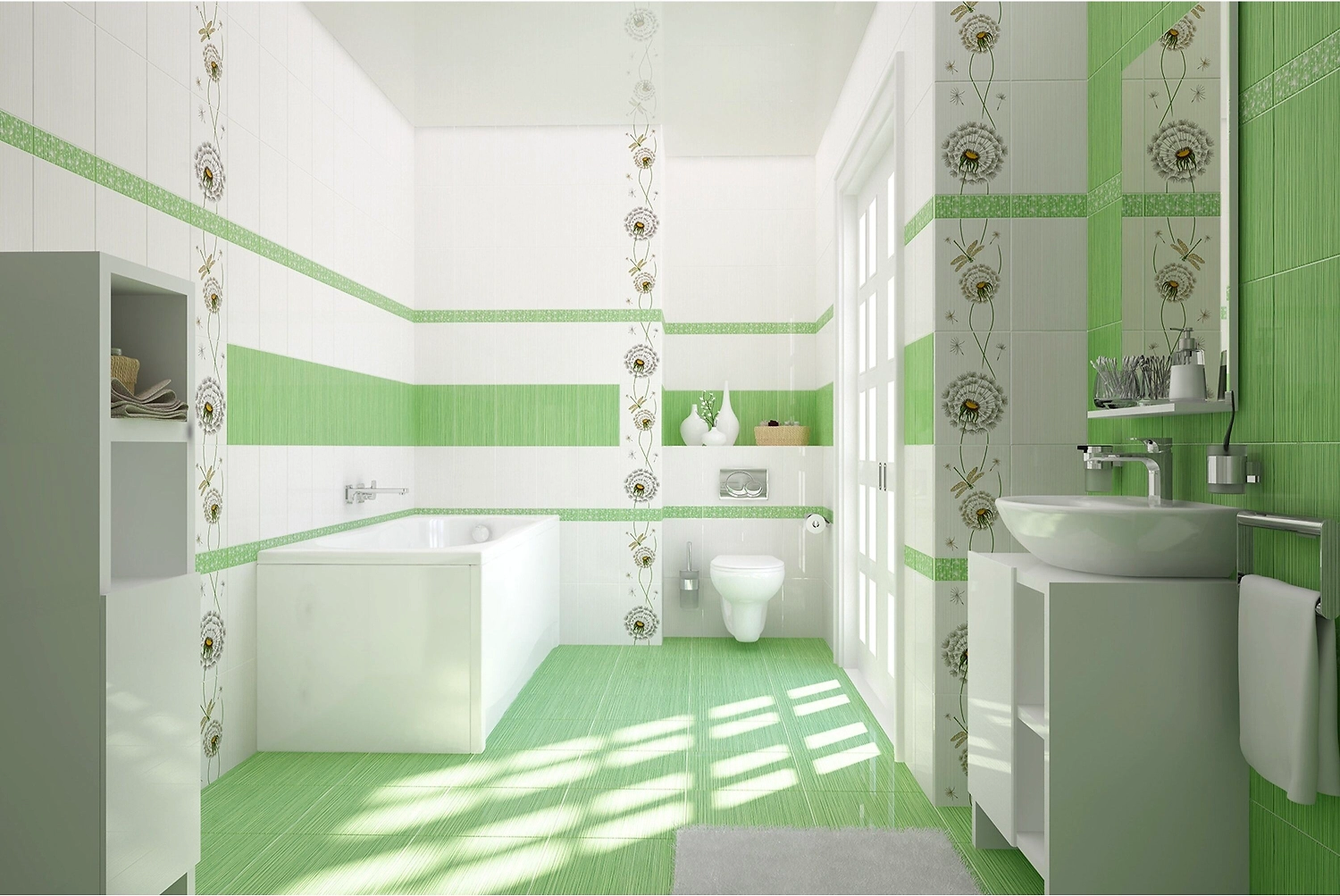 В коллекции Light гармонично сочетаются бежевый, зеленый и белый цвета. На декоративных элементах изображены изящные одуванчики и стрекозы. Воздушный дизайн создает ощущение легкости и весенней свежести.