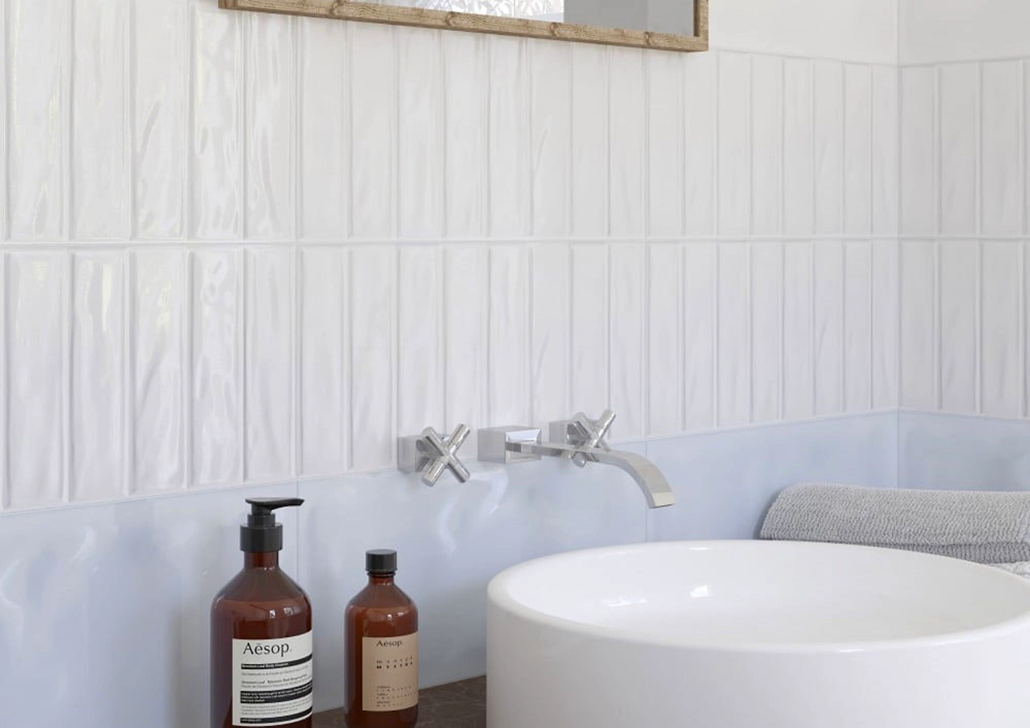 Выбирайте лаконичную плитку спокойных тонов, чтобы создать комфортную ультрасовременную ванную комнату в стиле софт-минимализм.