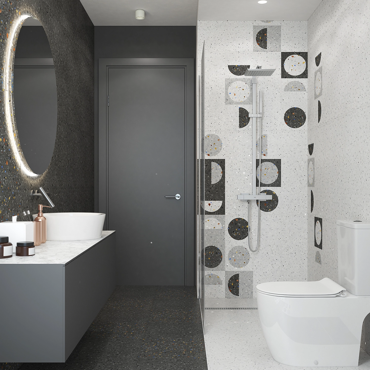 Серия Мари Эрми - современная интерпретация плитки Терраццо, бестселлера последних лет. Яркие вкрапления венецианской крошки из цветного стекла и фарфора оттеняют фактуру матовой глазури, делают пространство более легким и наполняют его солнечным светом. Более яркая цветовая гамма декора серии Мари Эрми сделает интерьер максимально выразительным. Плитка размером 750х250 мм подойдет для оформления помещений любой площади: небольшой ванной комнаты, гостиной, кофейни или галереи современного искусства.
