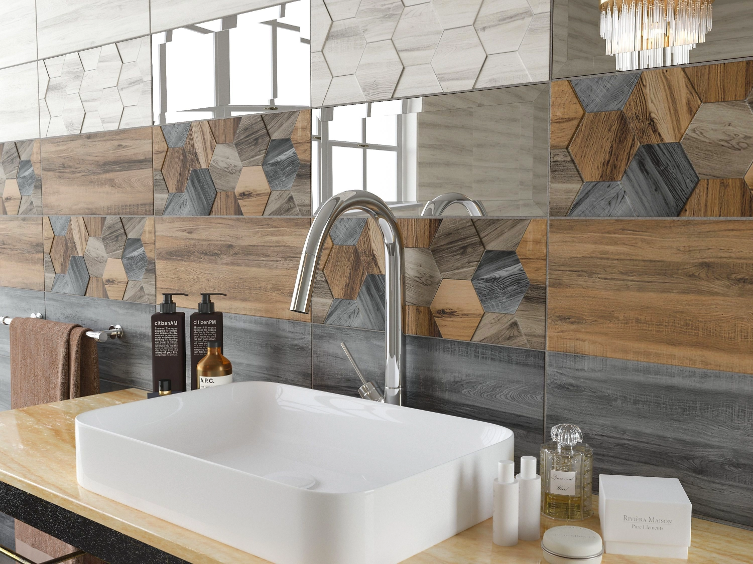 Сочетание природных фактур и необычных геометрических форм - главная особенность линейки Миф. В коллекции представлена напольная и настенная плитка, выполненная в духе самых актуальных дизайнерских трендов, которая подчеркивает прекрасный вкус хозяев дома.