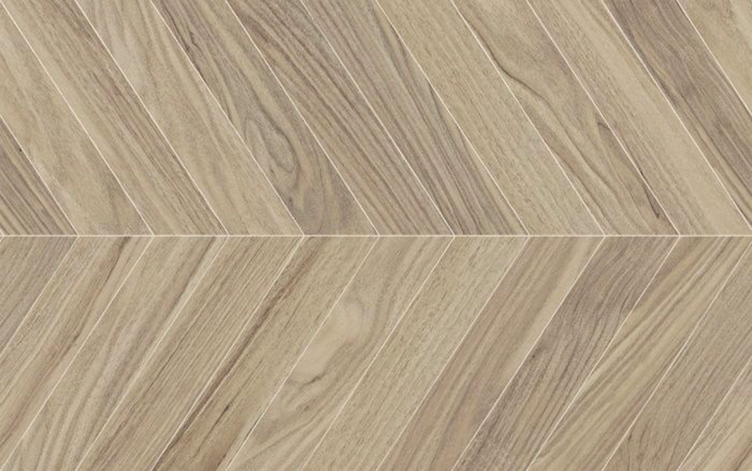 Настенная плитка Unitile Life Муза имитирует деревянный паркет, выполненный в популярной раскладке елочкой или шеврон.