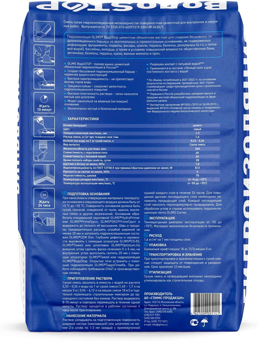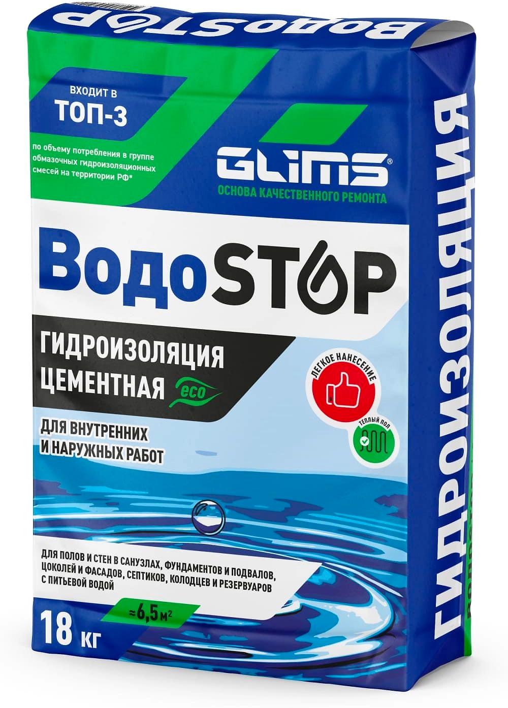 Гидроизоляция обмазочная цементная GLIMS ВодоSTOP 18 кг