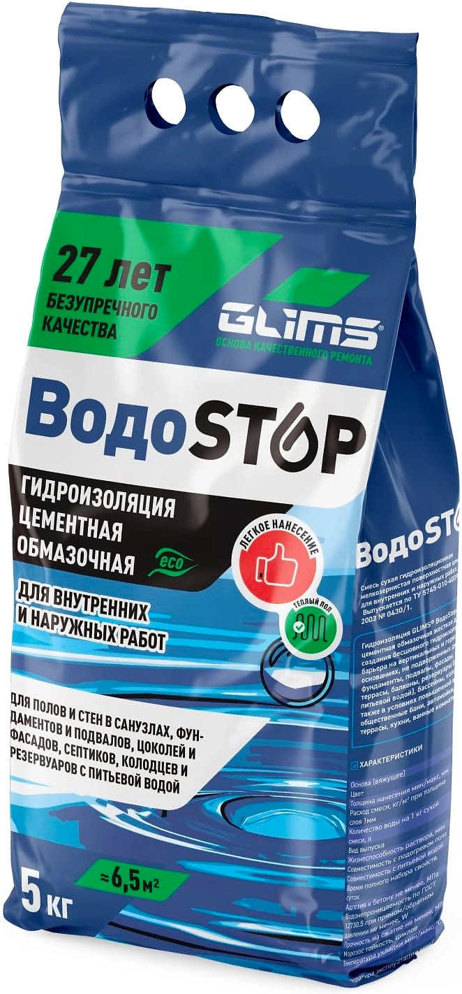 Гидроизоляция обмазочная цементная GLIMS ВодоSTOP 5 кг