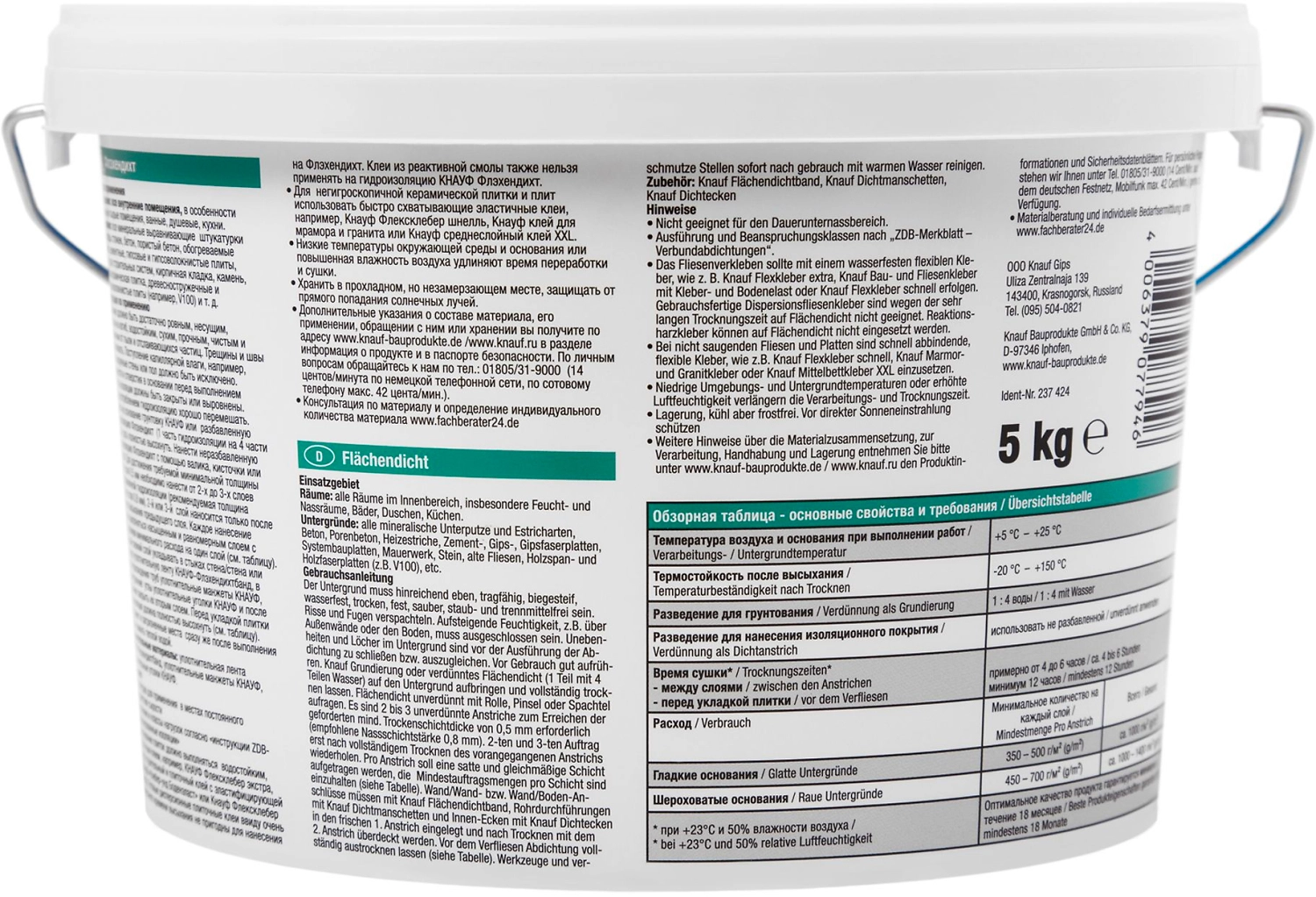 КНАУФ-Флэхендихт представляет собой водную дисперсию синтетического латекса и инертных заполнителей голубого цвета, используемая для гидроизоляции поверхностей стен и пола внутри зданий. Не содержит растворителей.