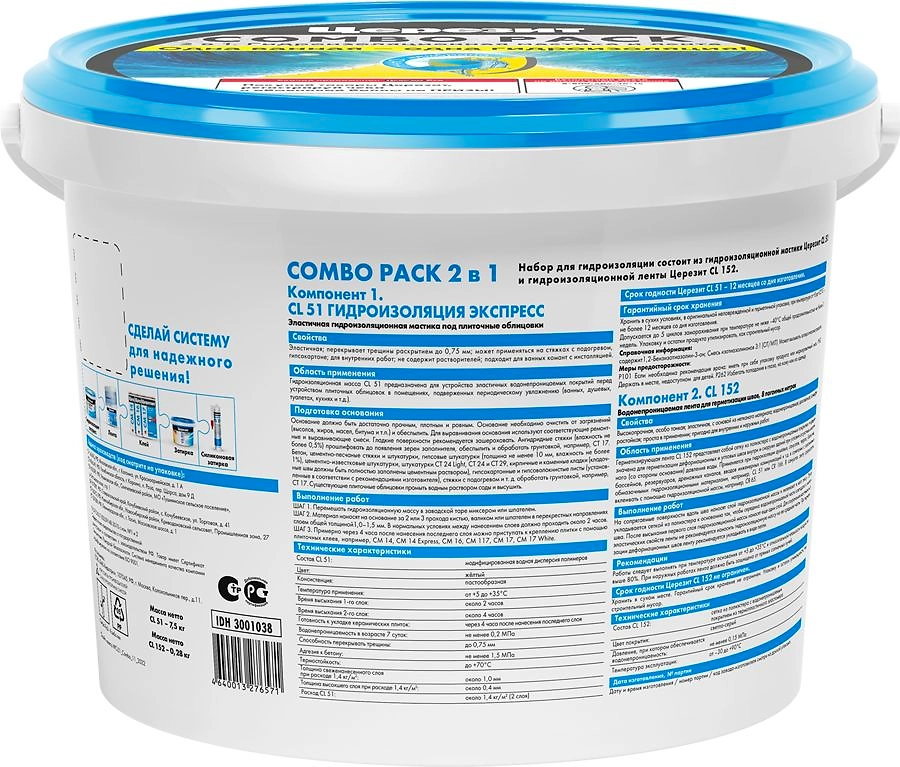 Гидроизоляция полимерная Церезит CL 51 экспресс + лента CL152 Combo Pack 8 кг