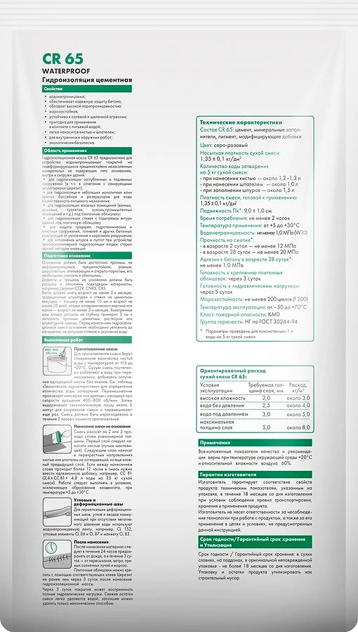 **СR 65** цементная гидроизоляционная масса для внутренних и наружных работ.