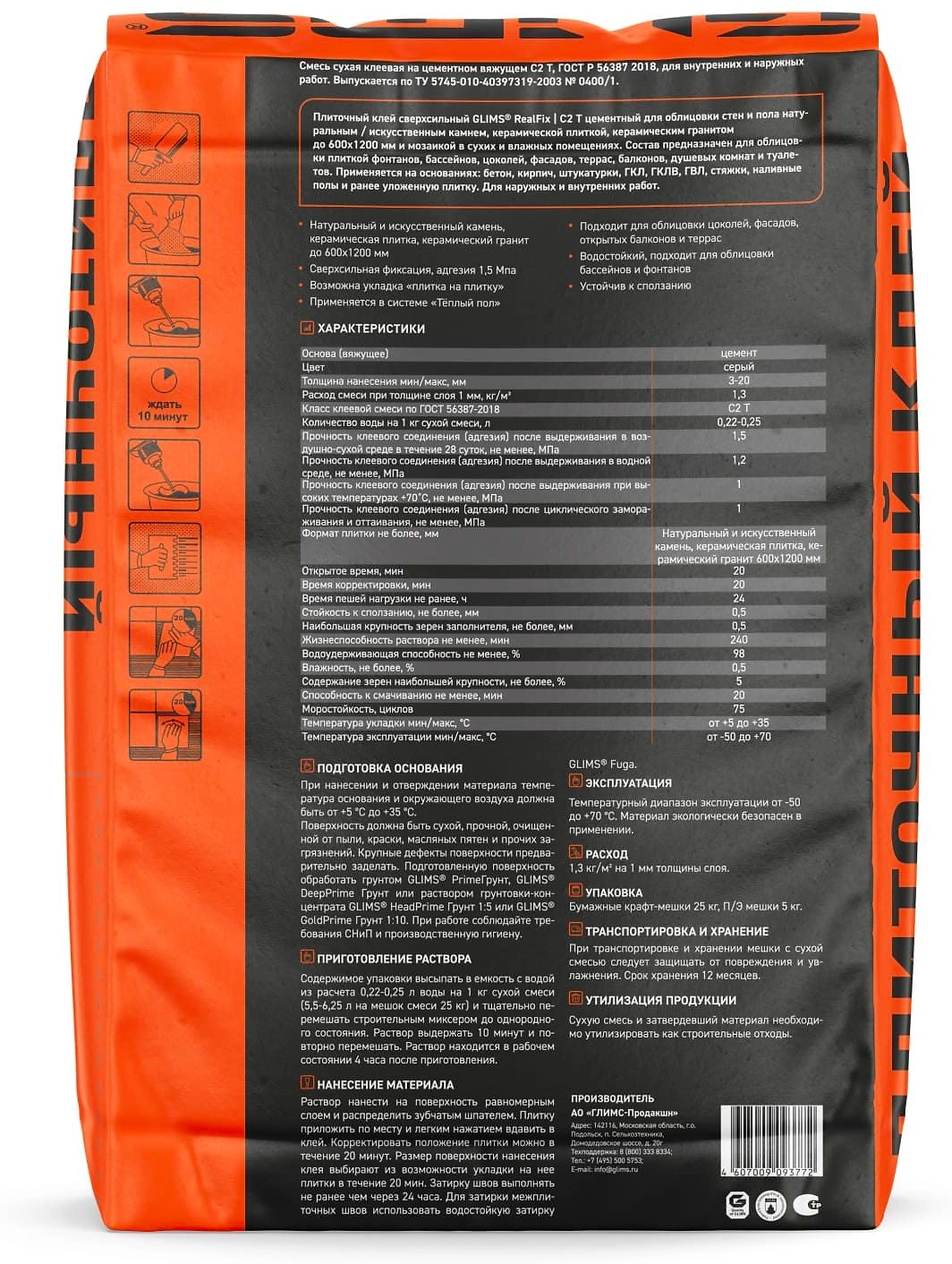 - Соответствует европейским нормам EN 12004 класс С2 - класс С2Т