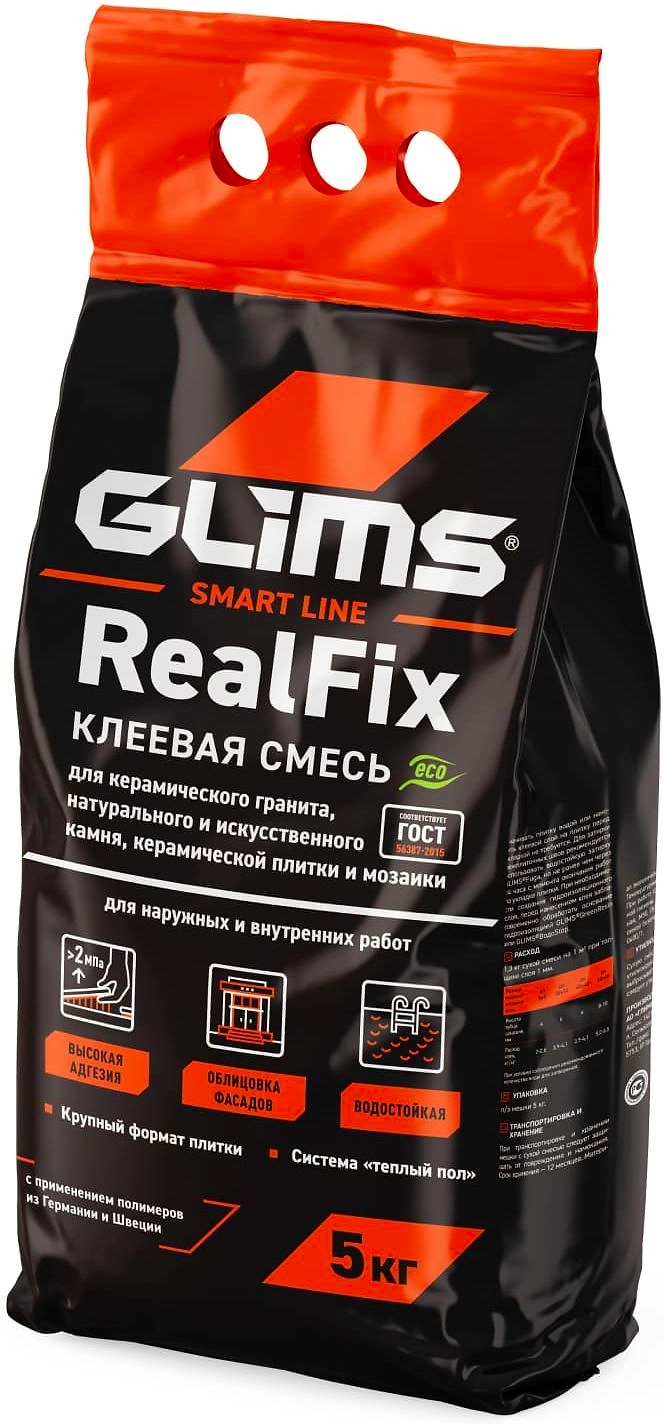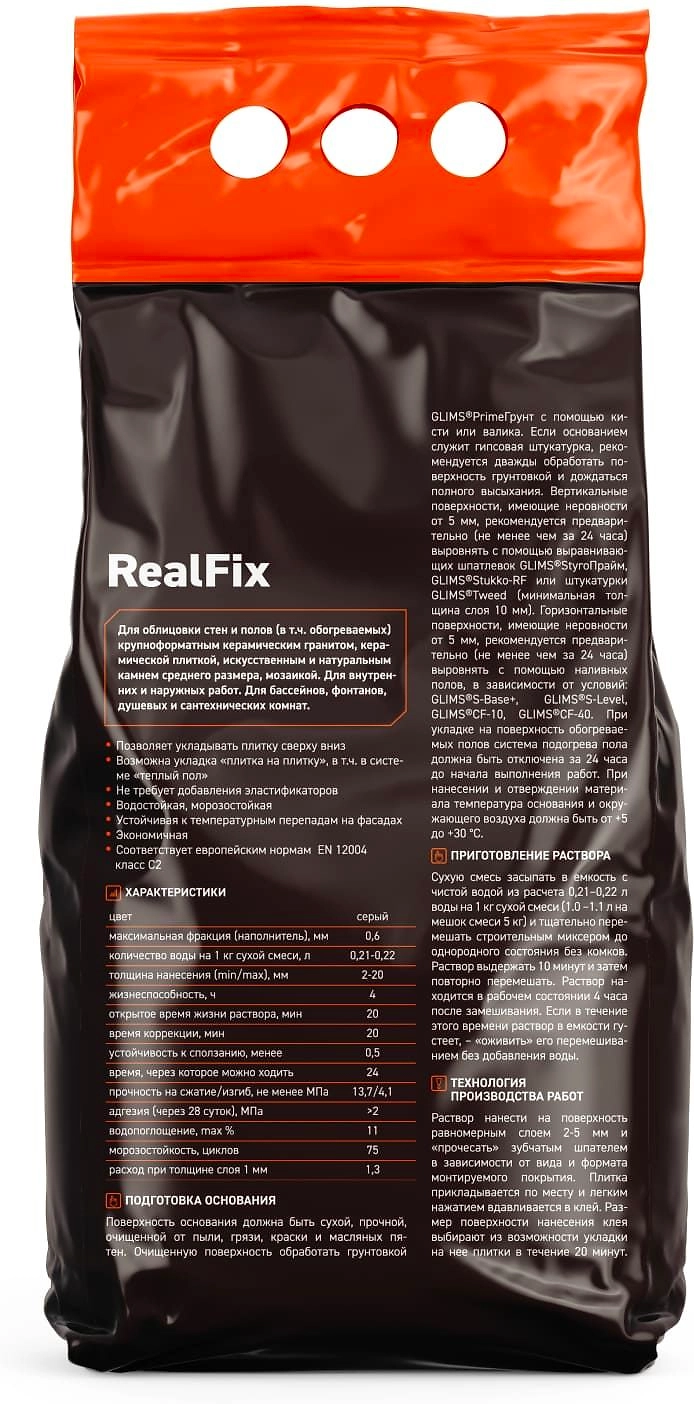 Плиточный клей цементный GLIMS RealFix серый 5 кг