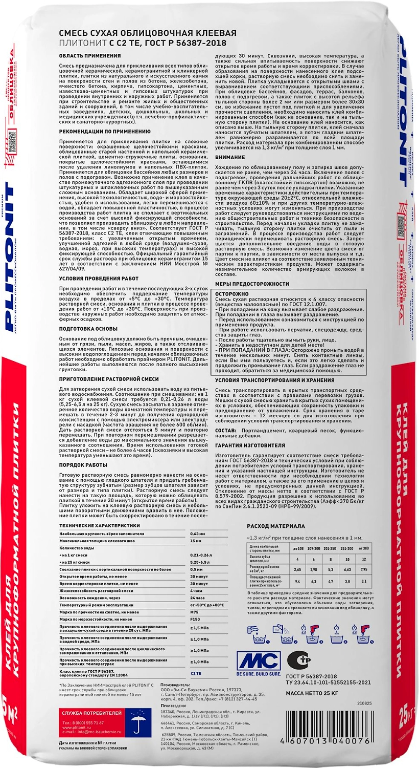 Для укладки керамической плитки, плитки из натурального и искусственного камня на сложные основания внутри и снаружи помещений. Эластичность, работы по всем видам недеформирующихся оснований, а также по старой краске, плитке на плитку. Гаранития 15 лет при облицовке керамогранита.