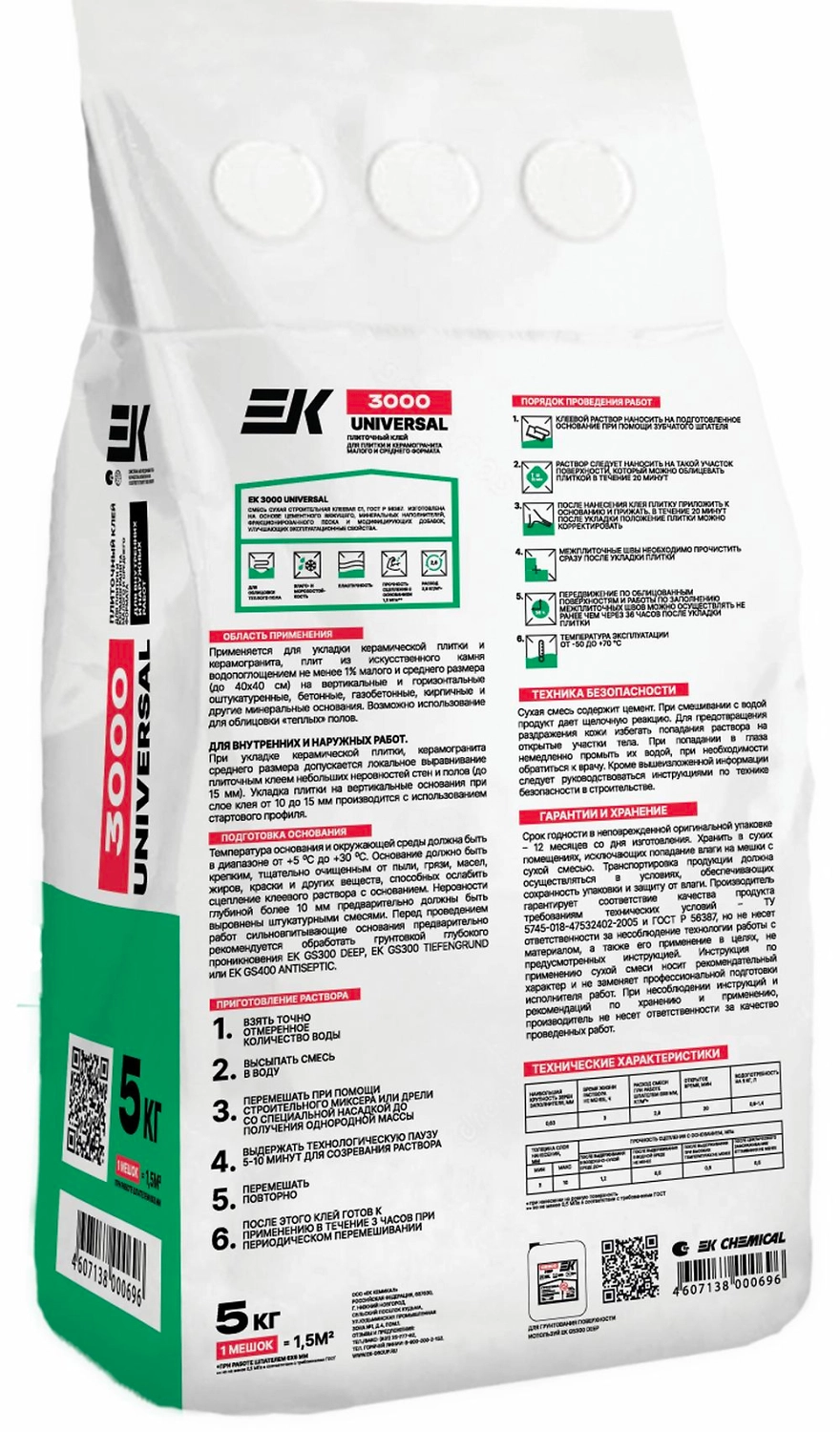 Клей применяется для укладки керамической плитки, керамогранитной плитки малых и средних размеров, плит из природного и искусственного камня водопоглощением не менее 1% на вертикальные и горизонтальные оштукатуренные, бетонные, газобетонные, кирпичные и другие минеральные основания. Для внутренних и наружных работ. Возможна укладка плитки методом "сверху-вниз". Возможно использование для облицовки "теплых полов". Допускается локальное выравниевание плиточным клеем небольших неровностей стен и полов слоем до 15 мм.