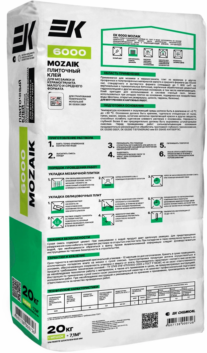 Плиточный клей EK 6000 MOZAIK 20 кг