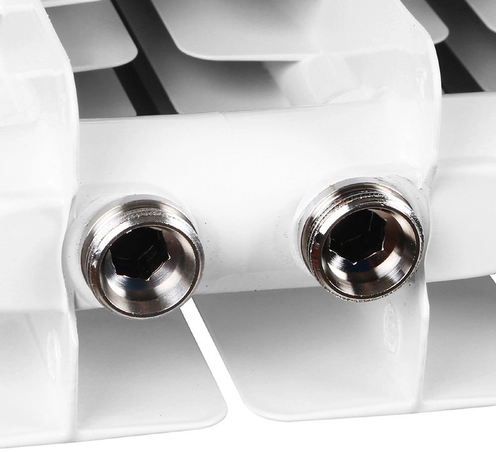 Радиатор герметично монтируется к системе отопления здания через нижнее правое подключение и обеспечивает отопление помещений площадью 18 кв.м.
