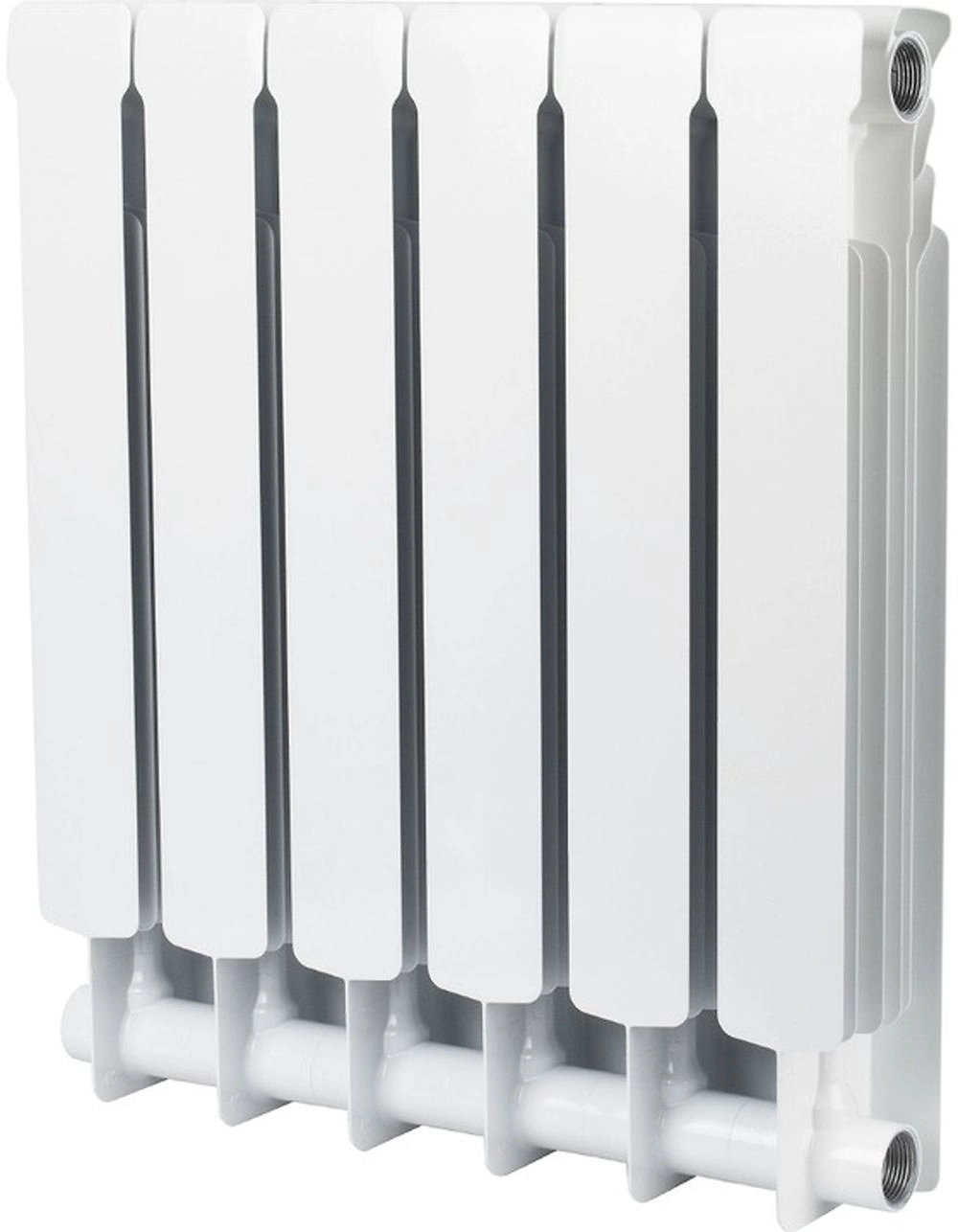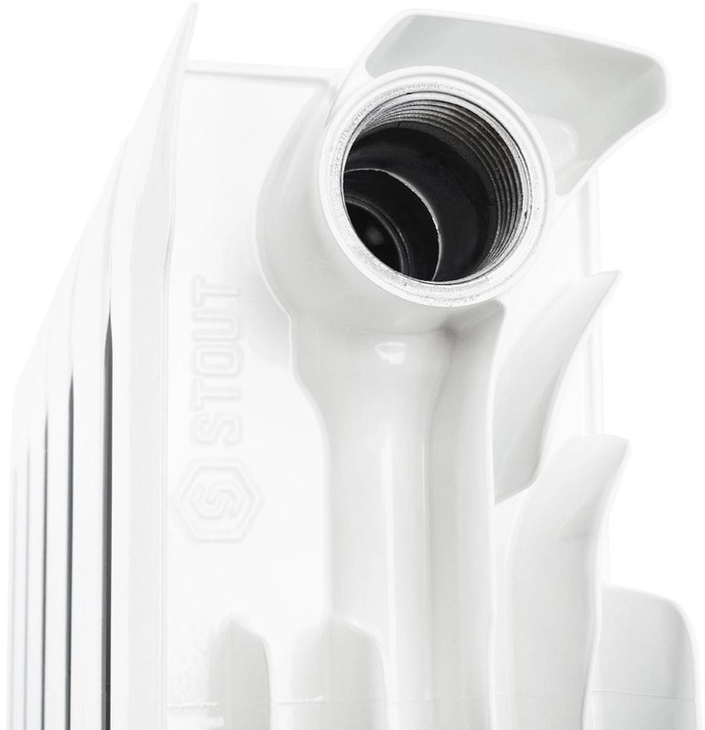 Биметаллический шестисекционный радиатор STOUT Space 500 подключается к системе центрального отопления здания и рассчитан на помещения площадью 11 кв.м.