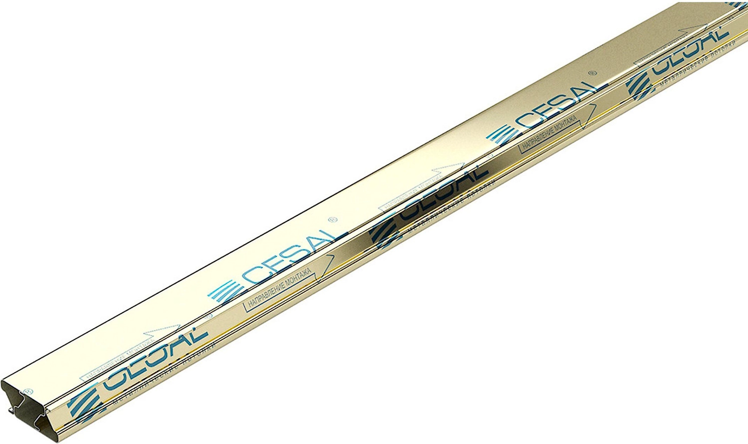 Набор вставок CESAL состоит из двух тонких планок - "раскладок", используемых для создания контрастных цветовых сочетаний с рейками. Модель выполнена из алюминия с золотистым покрытием.