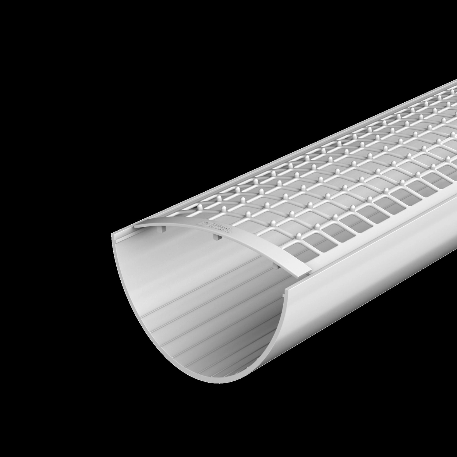 Решетка ТЕХНОНИКОЛЬ Architect - элемент водосточной системы, защищающий желоб от попадания снега, листвы и другого мусора. Модель выполнена из пластика белого цвета, имеет жесткую выпуклую поверхность.