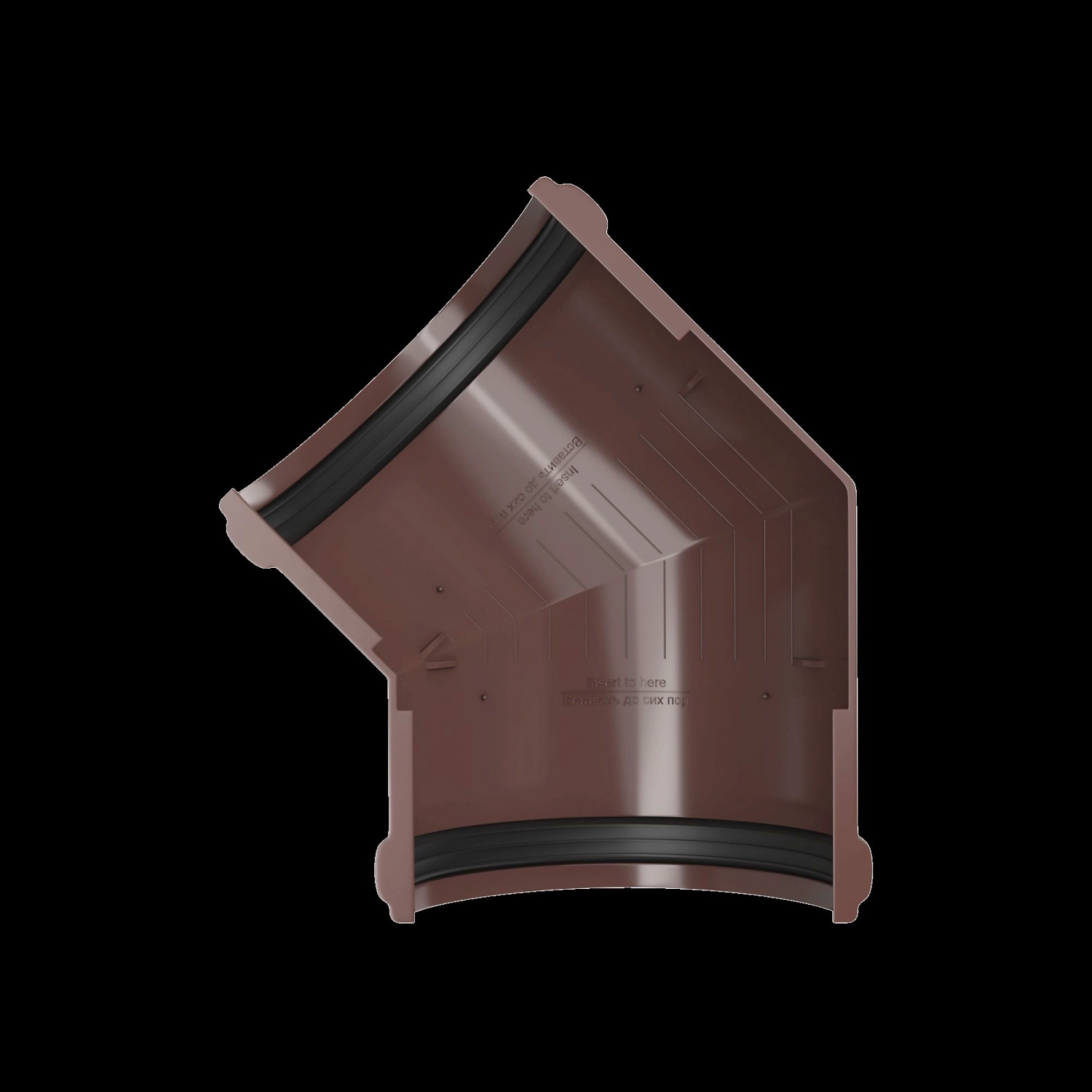 - Угол просто и герметично соединяется с желобом с помощью защелок с резиновыми уплотнителями.