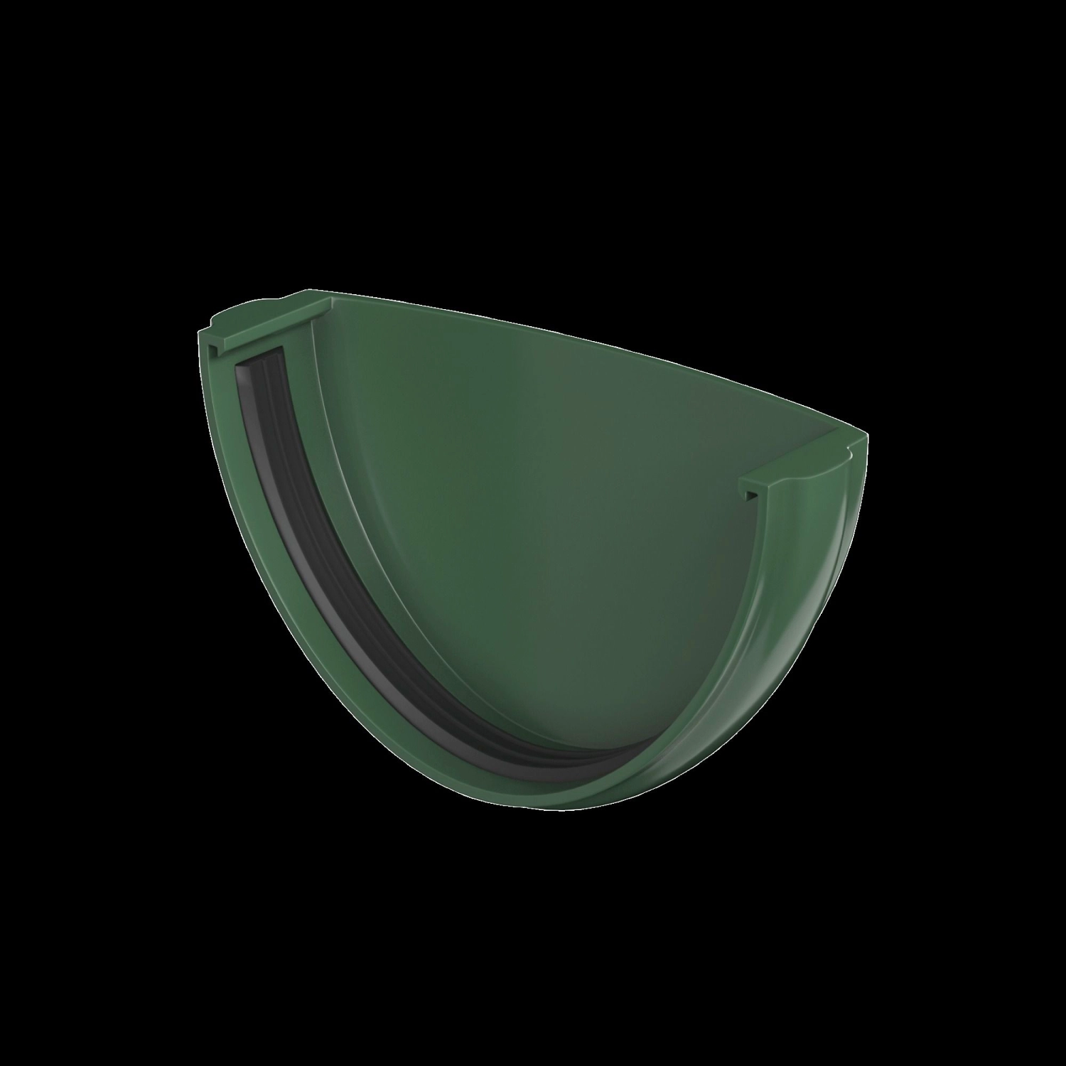 Заглушка - элемент водосточной системы, закрывающий торцы желоба и направляющий воду в сторону слива. Деталь выполнена в зеленом цвете, подходит для желобов той же серии диаметром 125 мм.