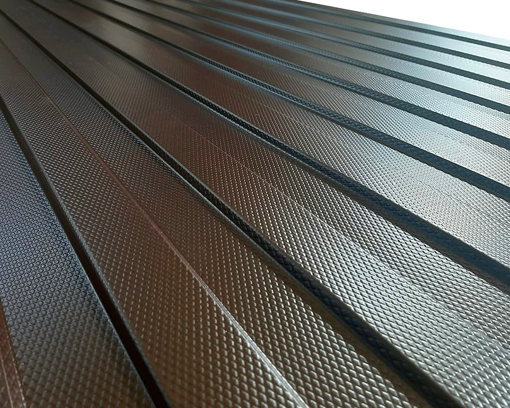 - Текстурированное покрытие с ромбовидным рисунком придает профнастилу стильный вид.