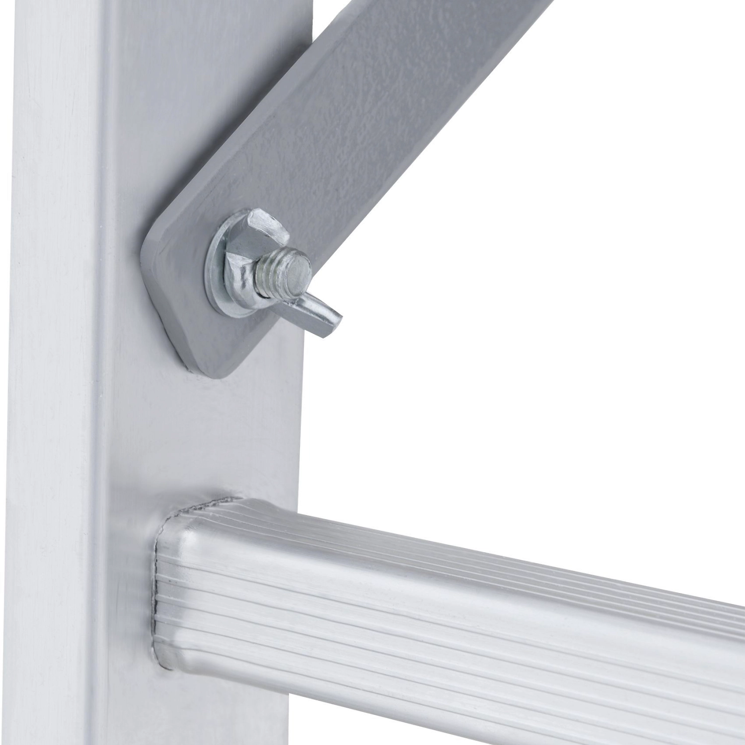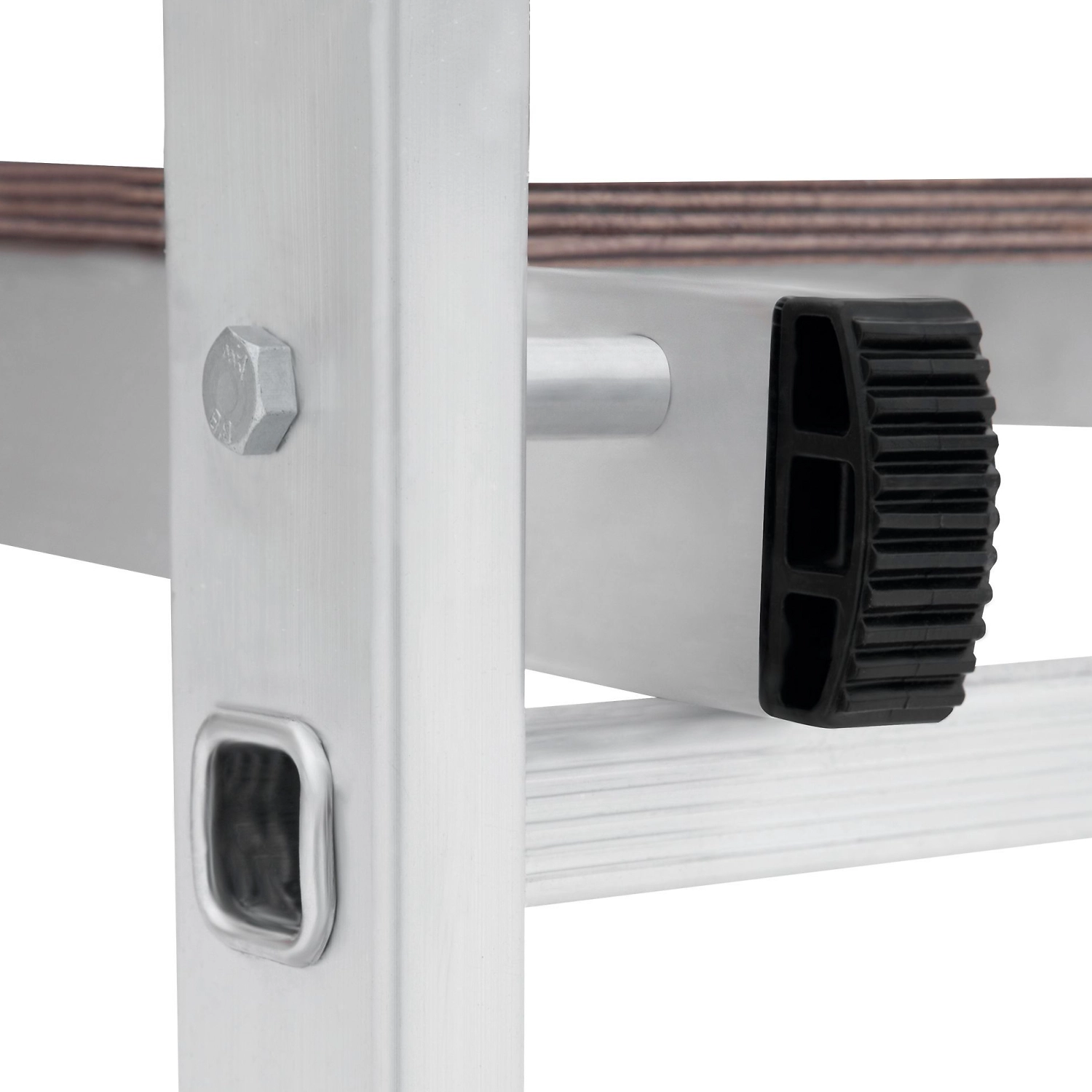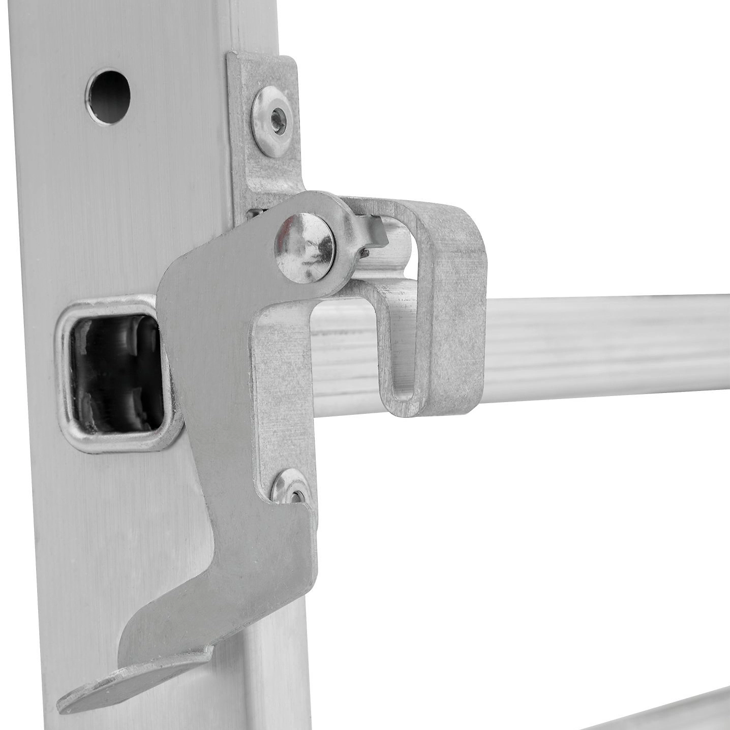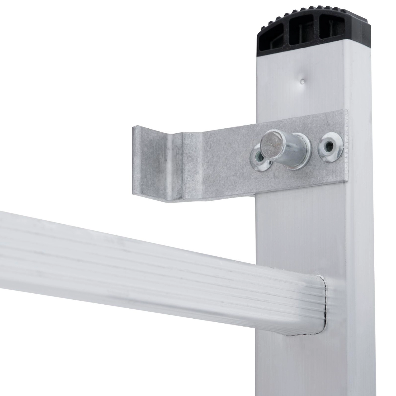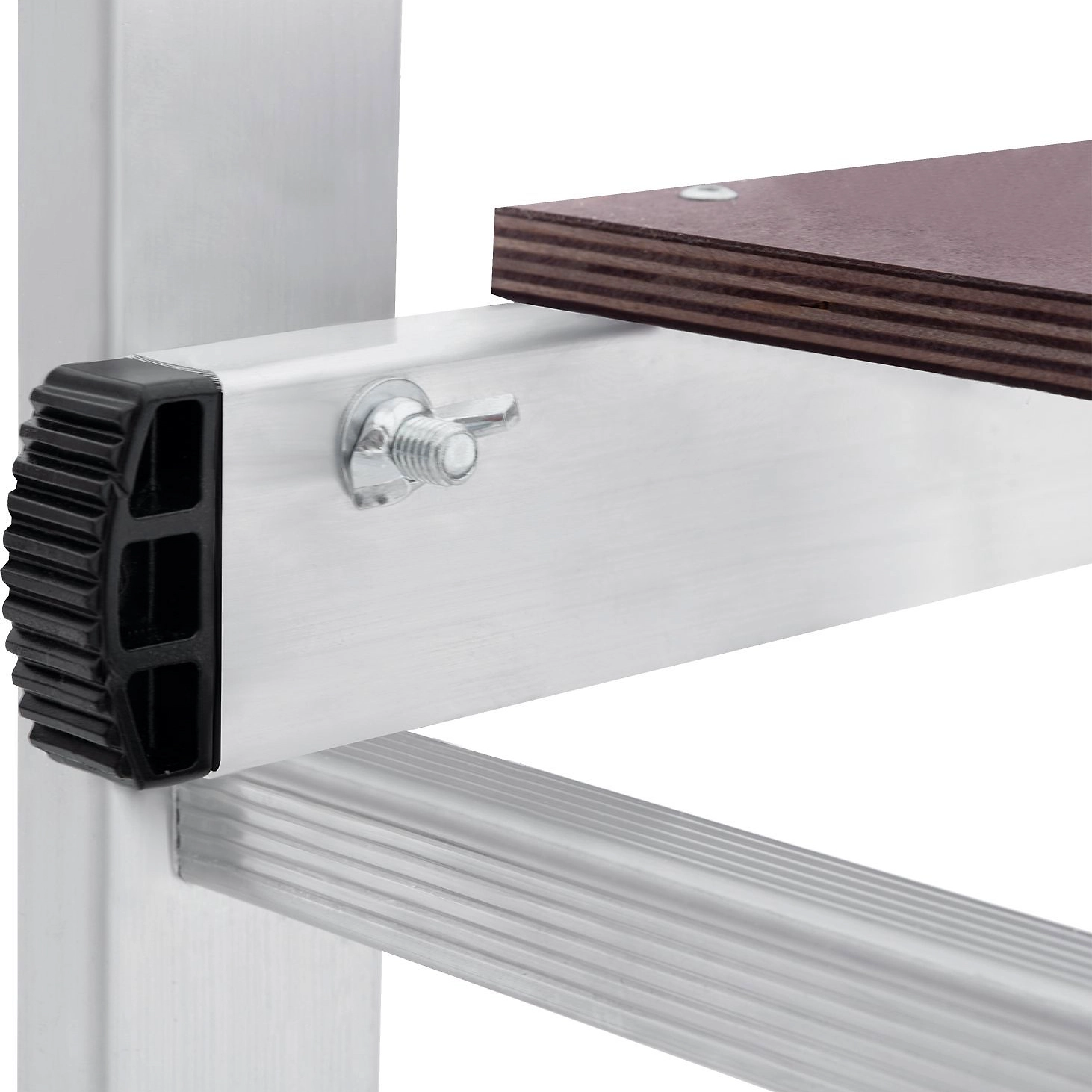 Лестница изготовлена из алюминиевого профиля. Может использоваться в качестве помоста или небольшой вышки. Пластиковые накладки на ножках препятствуют скольжению. Конструкция обладает хорошей устойчивостью и надежностью.