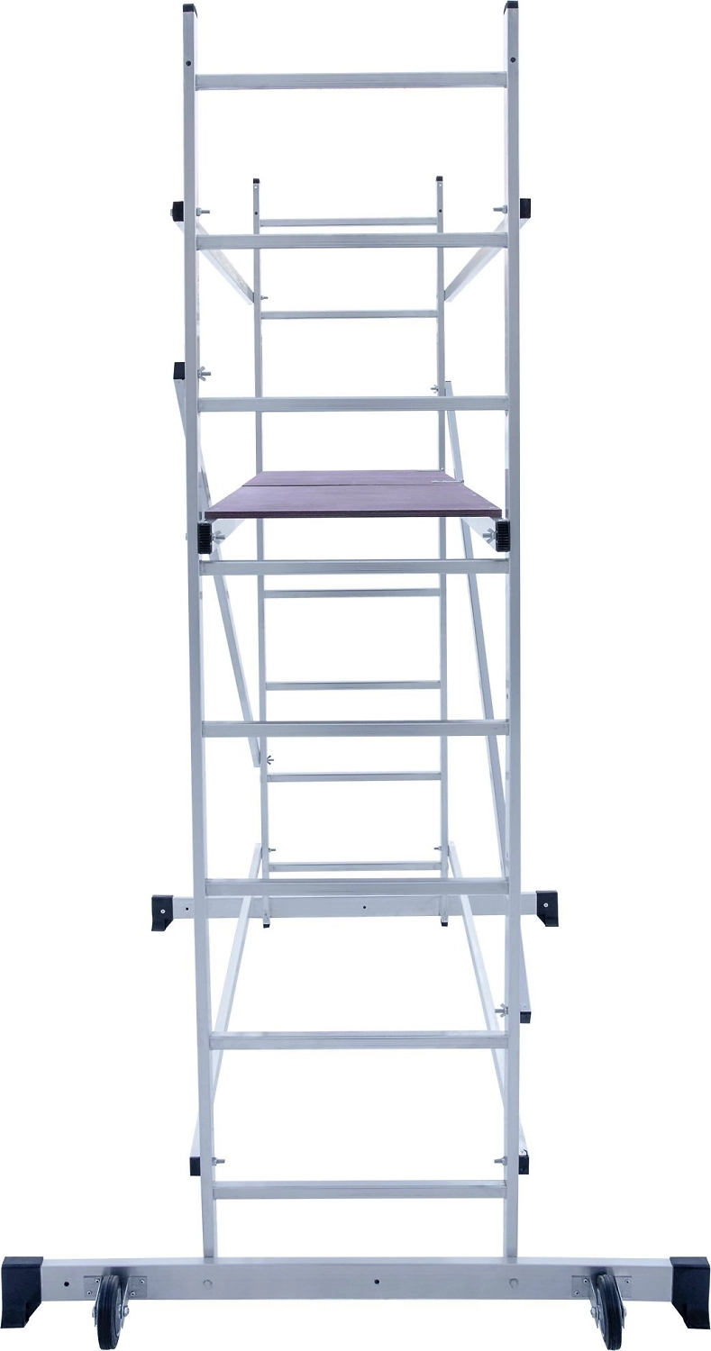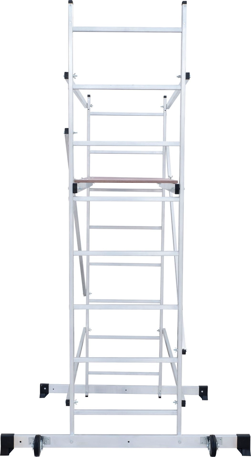 Данное приспособление предназначено для поддержки рабочего во время проведения строительных работ. Вышка может устанавливаться как внутри, так и вне помещений. Алюминиевая конструкция быстро устанавливается и разбирается. В конструкции предусмотрены две торцевые лестницы, помост с люком и противоскользящим покрытием, который можно закреплять на любом уровне вышки.