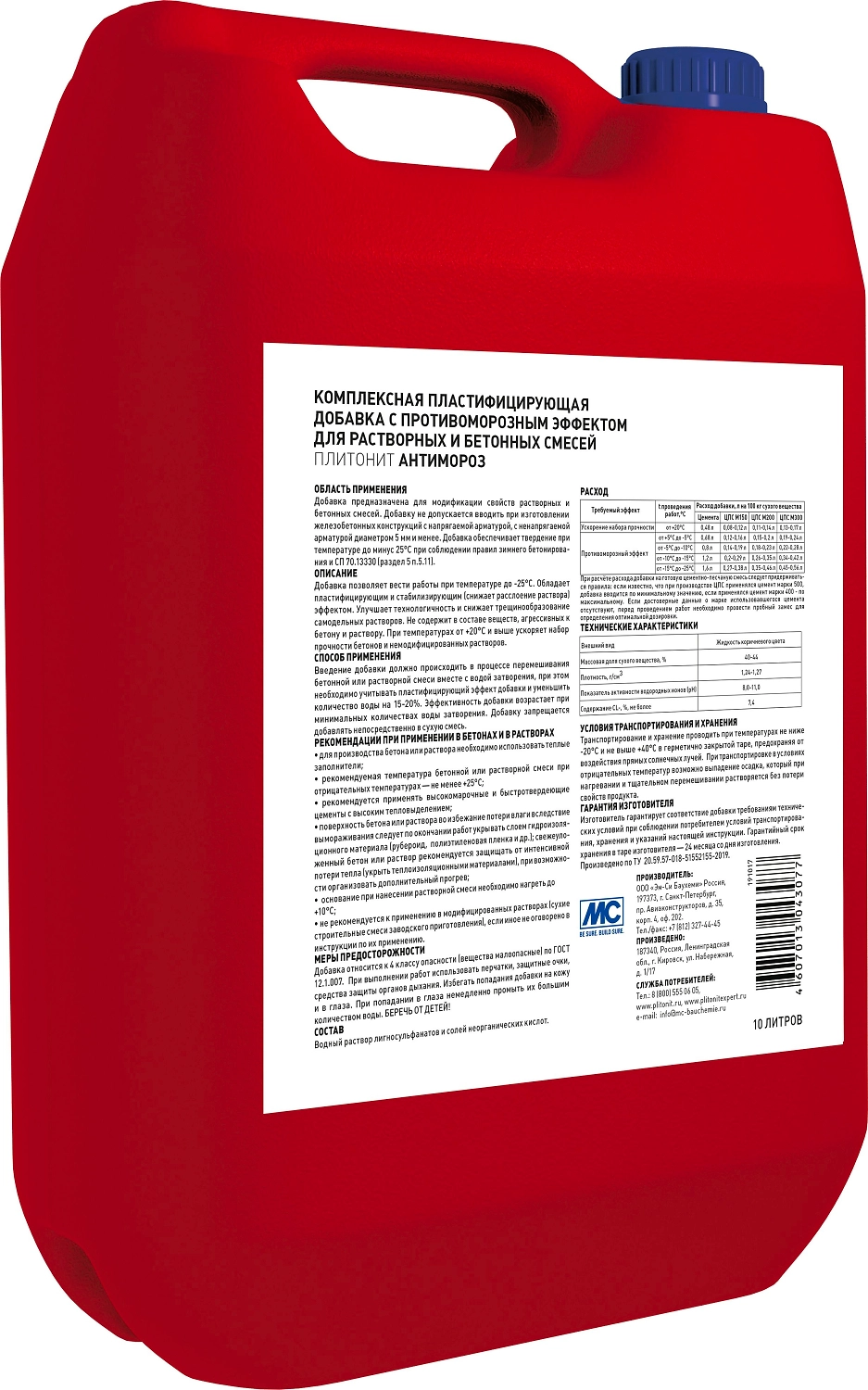 Добавка противоморозная PLITONIT АнтиМороз 10 л