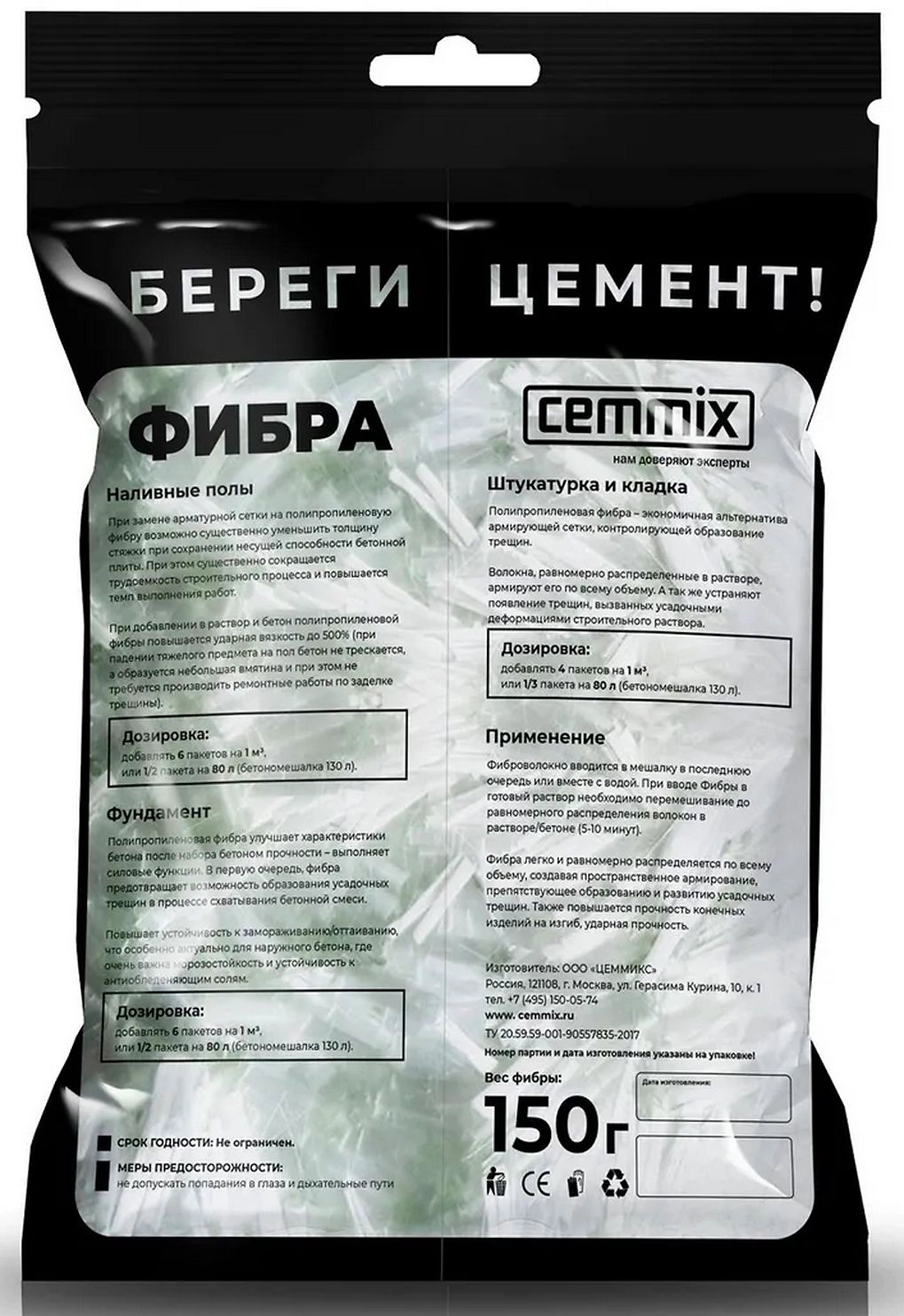 Cemmix полипропиленовая фибра для бетона и строительных растворов - волокно из полпропилена с эффектом армирования. Повышает эксплуатационные характеристики бетона, а также растворов на основе цемента или гипса, используемых для возведения фундамента, для формирования наливного пола, для изготовления строительных блоков, для кладки и отделочных работ. Применение фибры снижает вероятность появления трещин как на этапе усадки, так и при дальнейшей эксплуатации.
