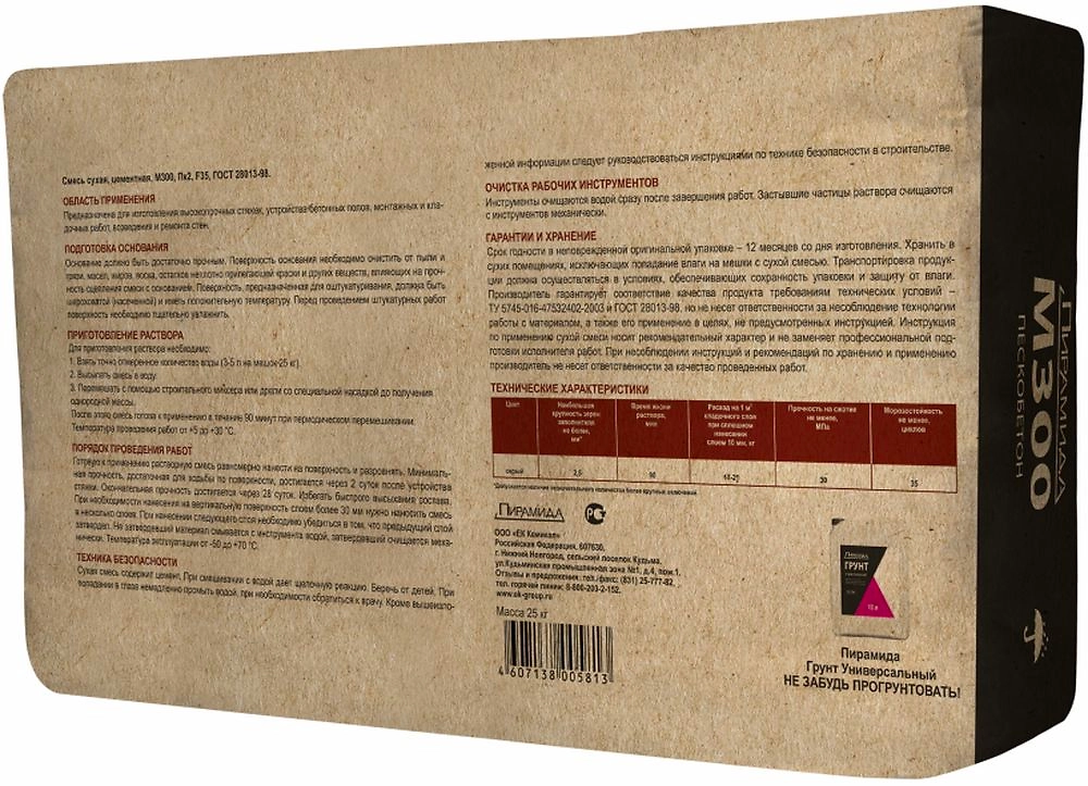 Пескобетон цементный ПИРАМИДА М300 25 кг