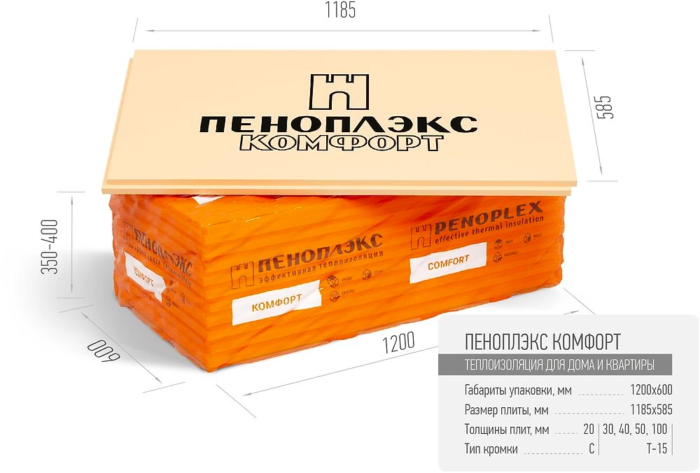 ПЕНОПЛЭКС КОМФОРТ толщиной 50 мм предназначен для утепления стен, балконов, лоджий, скатной и плоской кровли, чердачных перекрытий, каркасных домов, подходит для системы отопления "теплый пол".