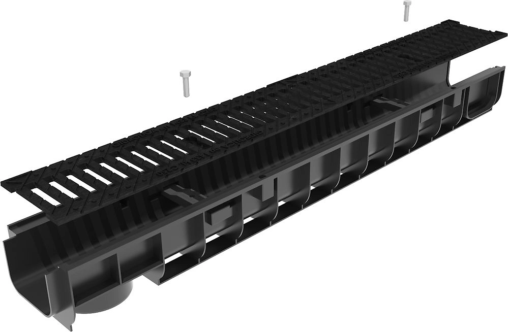 Крепеж Gidrolica для водоотводного лотка DN100 состоит из стального болта с шестигранной шляпкой и пластиковой накладки. Фирменные монтажные элементы надежно соединяют детали ливневой канализации, делают конструкцию единой и прочной.