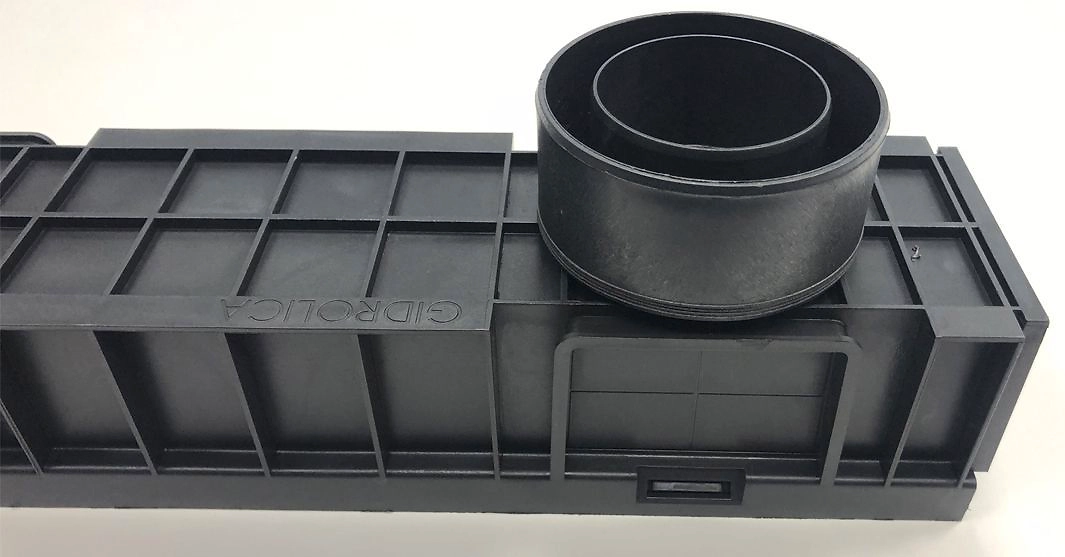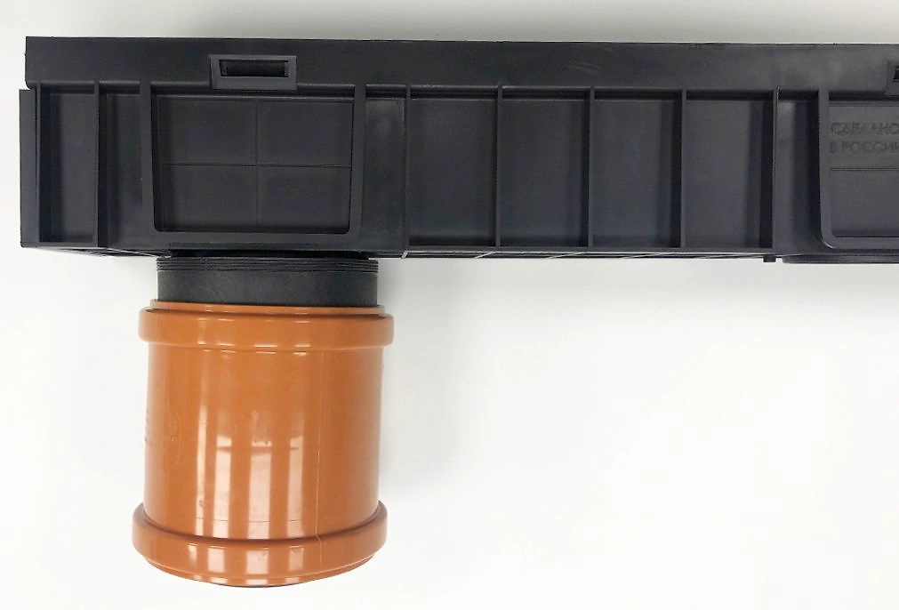 Переходник используется для соединения водоотводного лотка и канализационной трубы диаметром 110 мм.