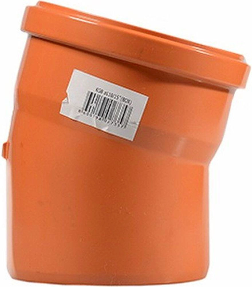 Наружный отвод Pestan из непластифицированного поливинилхлорида используется для соединения двух канализационных труб диаметром 110 мм под углом 15 градусов и плавного изменения направления потока жидкости.