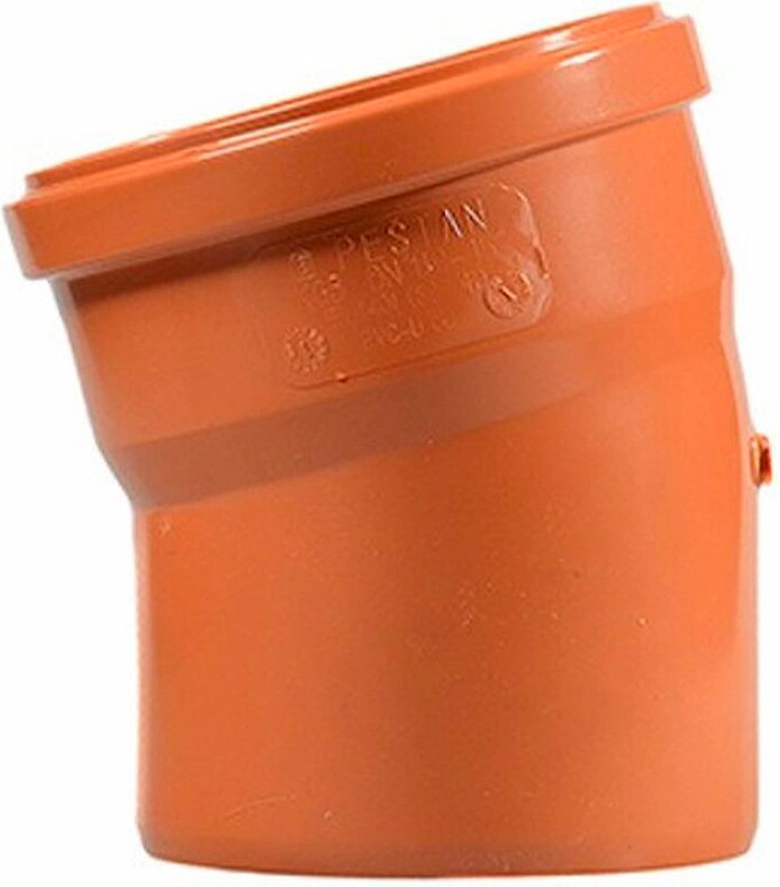 Наружный отвод Pestan из непластифицированного поливинилхлорида используется для соединения двух канализационных труб диаметром 110 мм под углом 15 градусов и плавного изменения направления потока