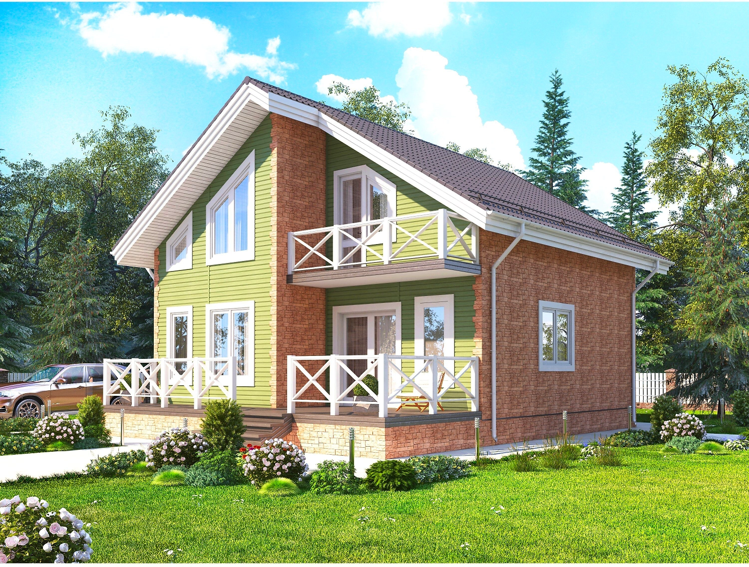 Фасадные панели FineBer "под дикий камень" 46,4Х111,7 см широко используются для отделки фасадов частных домов.
