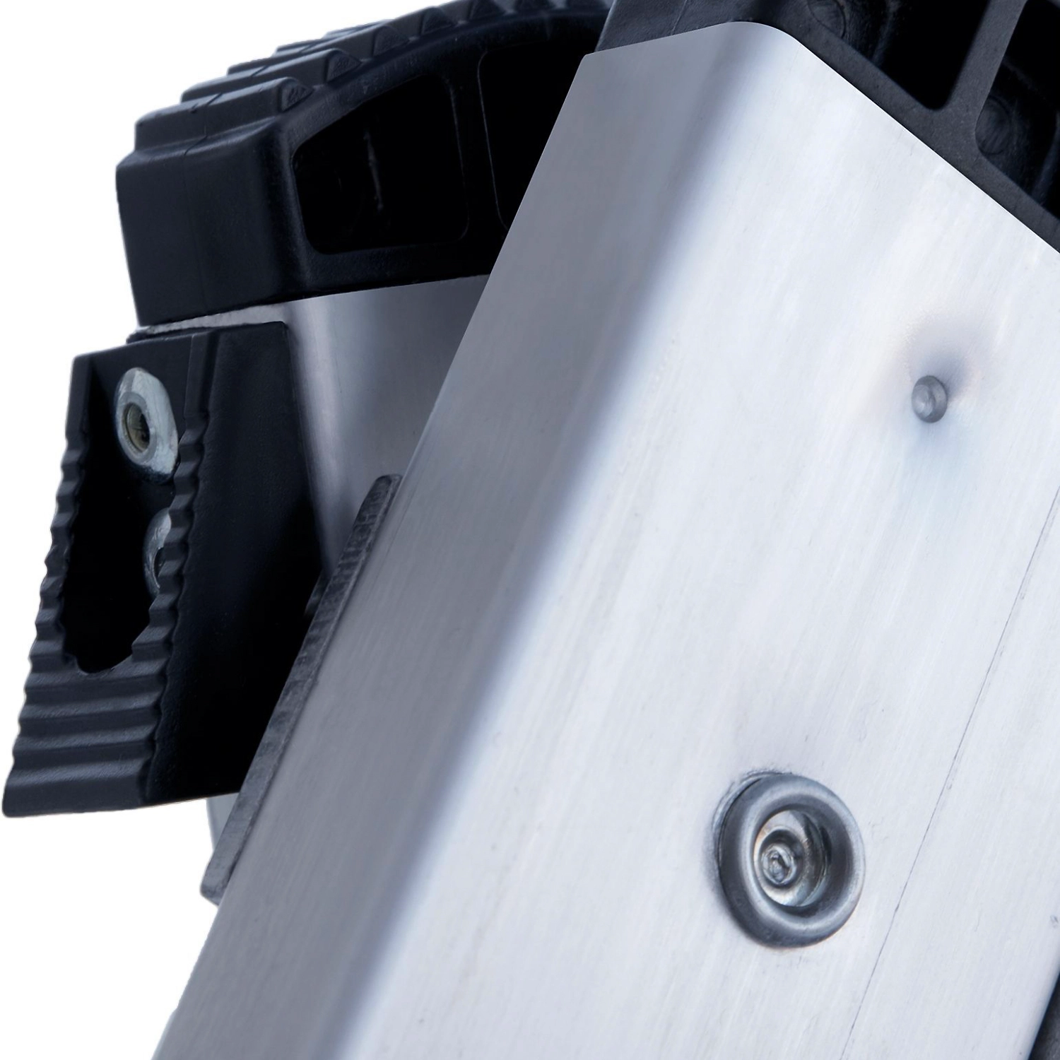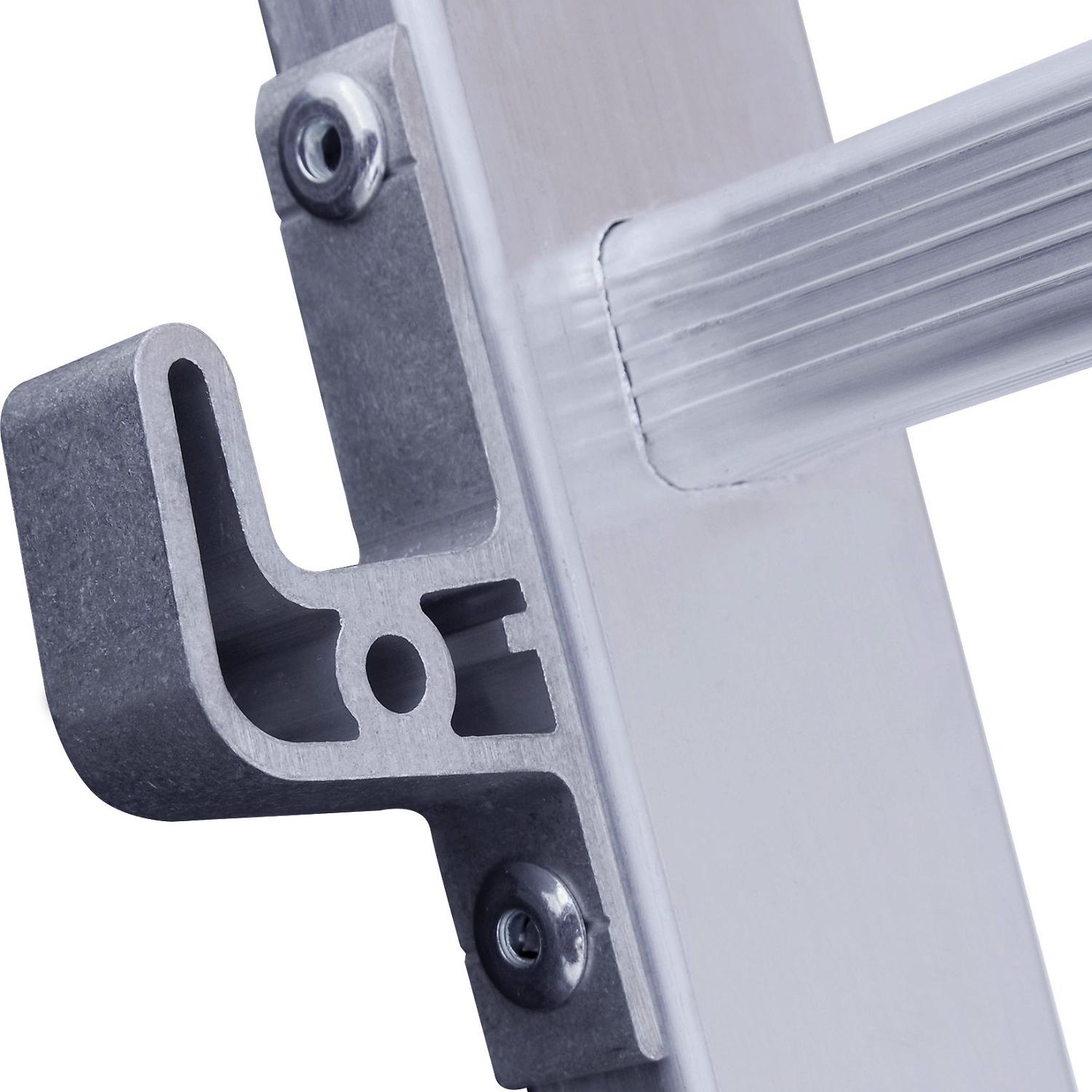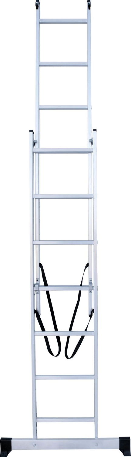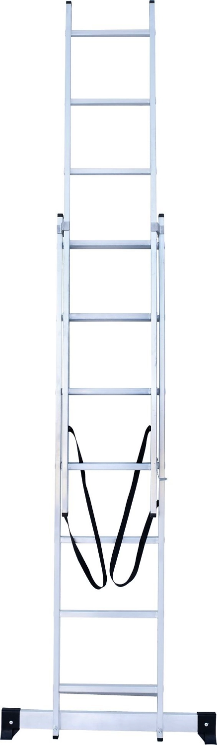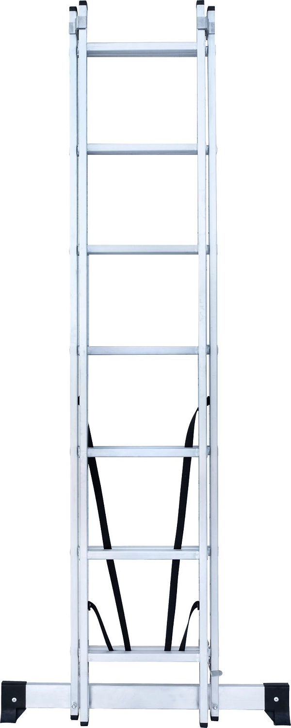 Алюминиевая раскладная двухсекционная лестница 2х7 ступеней стандартной серии предназначена для бытовых работ. Варианты использования: приставная лестница, приставная лестница с выдвижной секцией, двухсторонняя стремянка. Обладает высокой прочностью при небольшом весе.