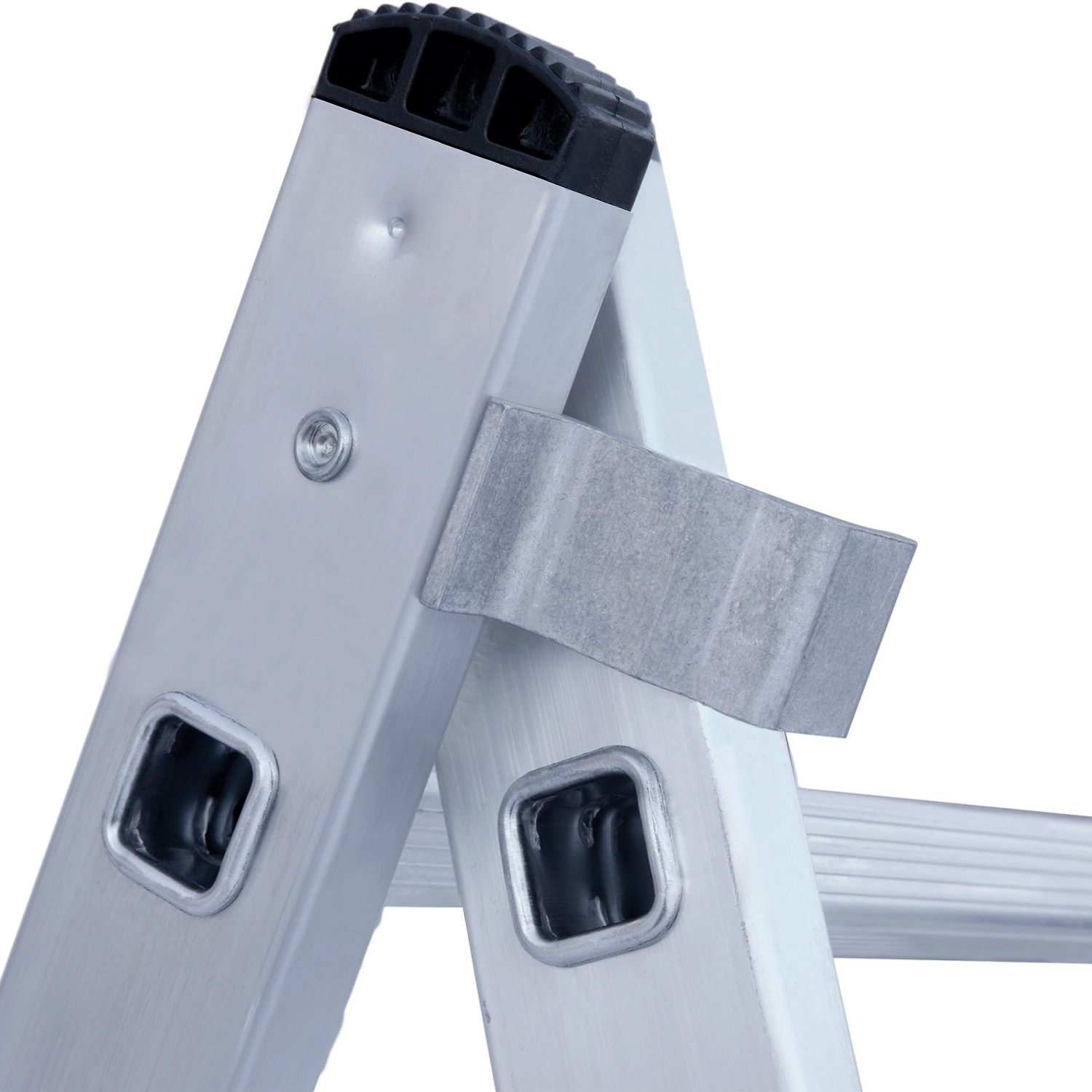 Алюминиевая раскладная двухсекционная лестница 2х7 ступеней стандартной серии предназначена для бытовых работ.