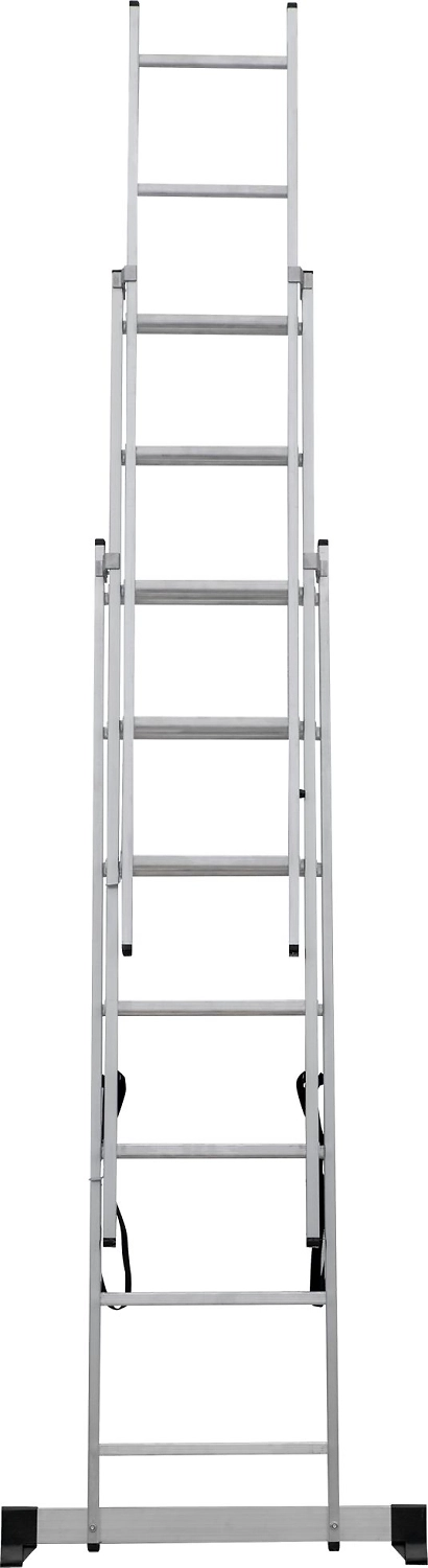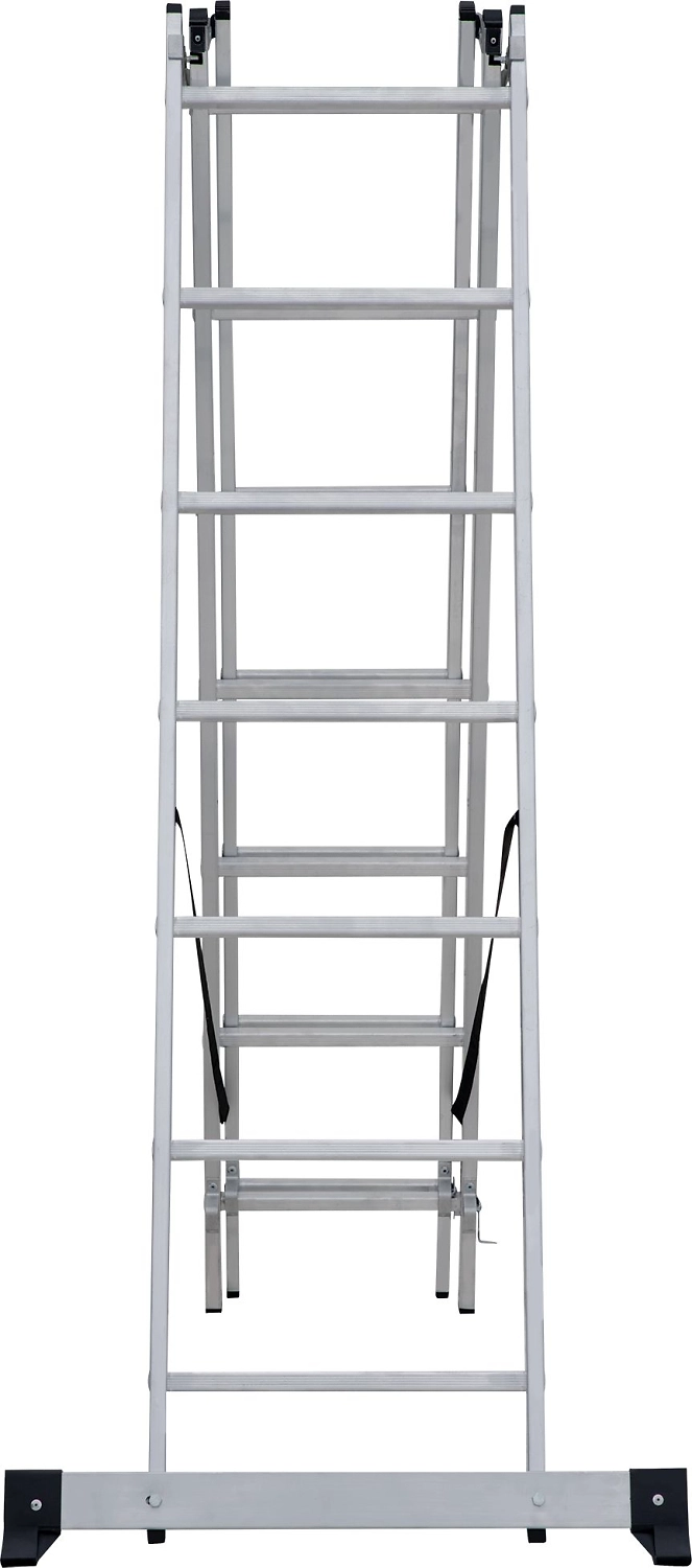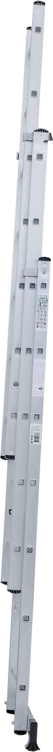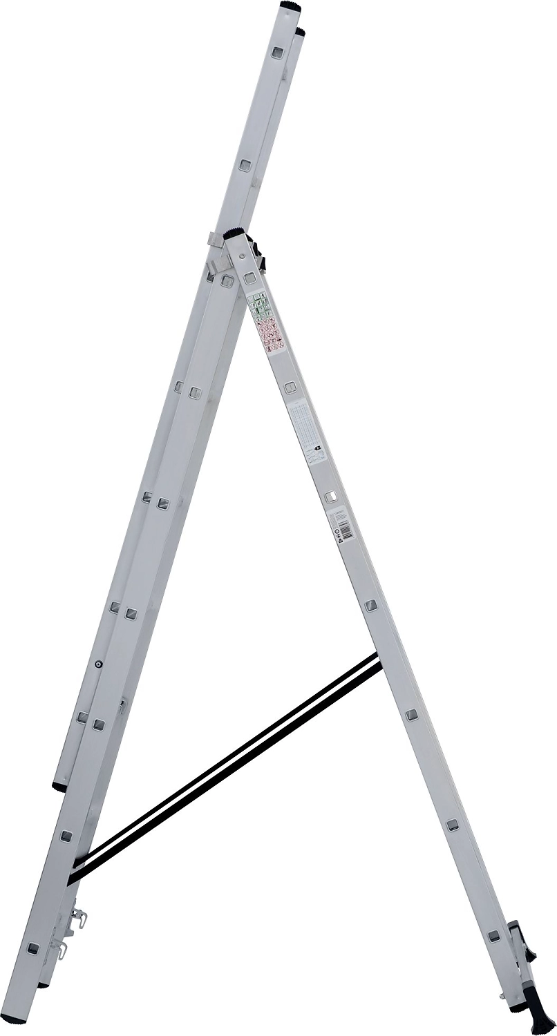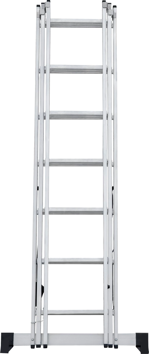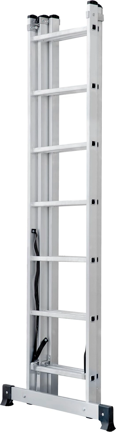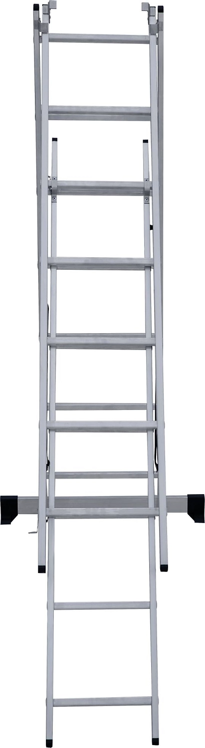Алюминиевая раскладная трёхсекционная лестница 3х7 ступеней стандартной серии предназначена для бытовых работ. Варианты использования: приставная лестница, приставная выдвижная лестница, стремянка, стремянка с выдвинутой секцией, функция "лестничный пролёт". Обладает высокой прочностью при небольшом весе.