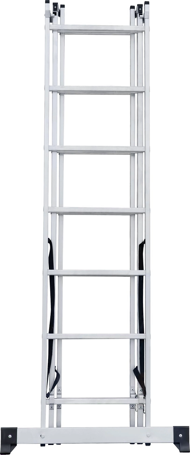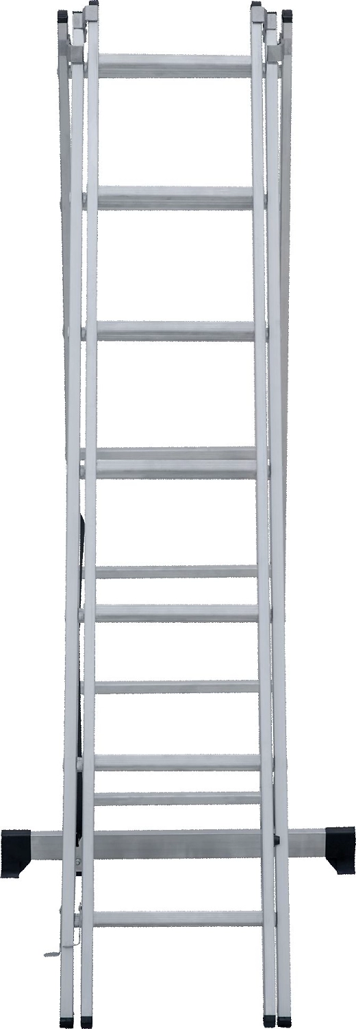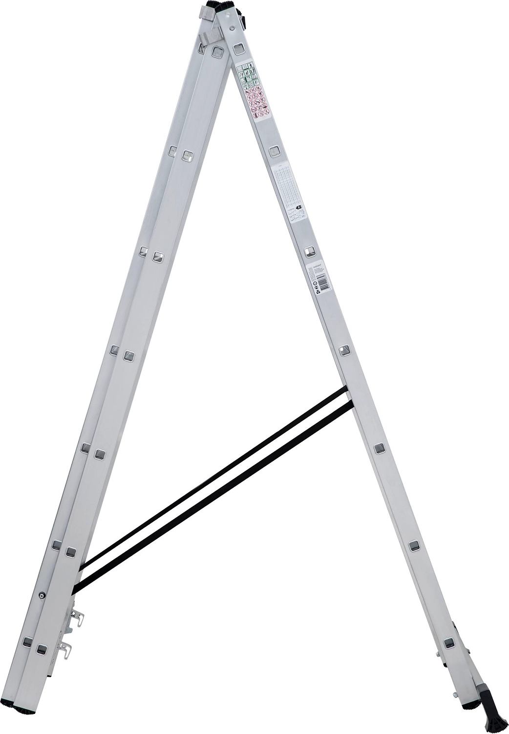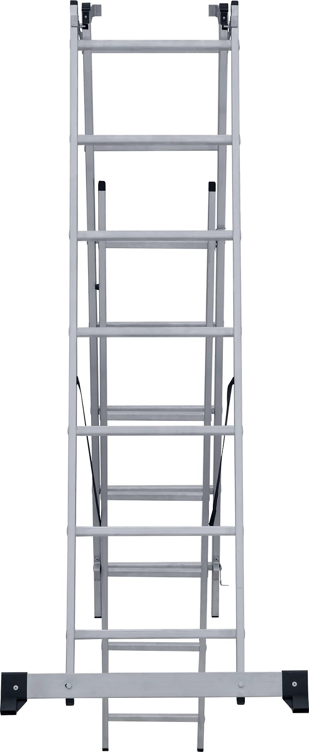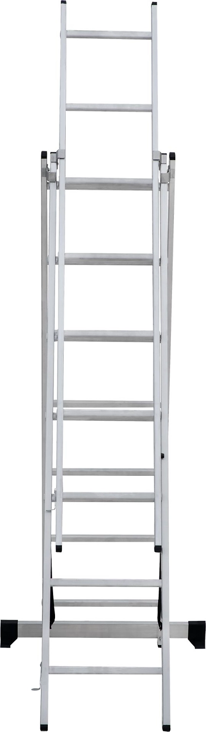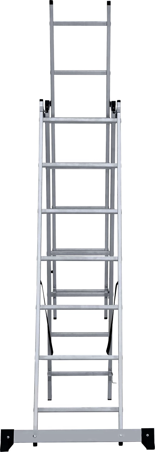 Алюминиевая раскладная трёхсекционная лестница 3х7 ступеней стандартной серии предназначена для бытовых работ. Варианты использования: приставная лестница, приставная выдвижная лестница, стремянка, стремянка с выдвинутой секцией, функция "лестничный пролёт". Обладает высокой прочностью при небольшом весе.
