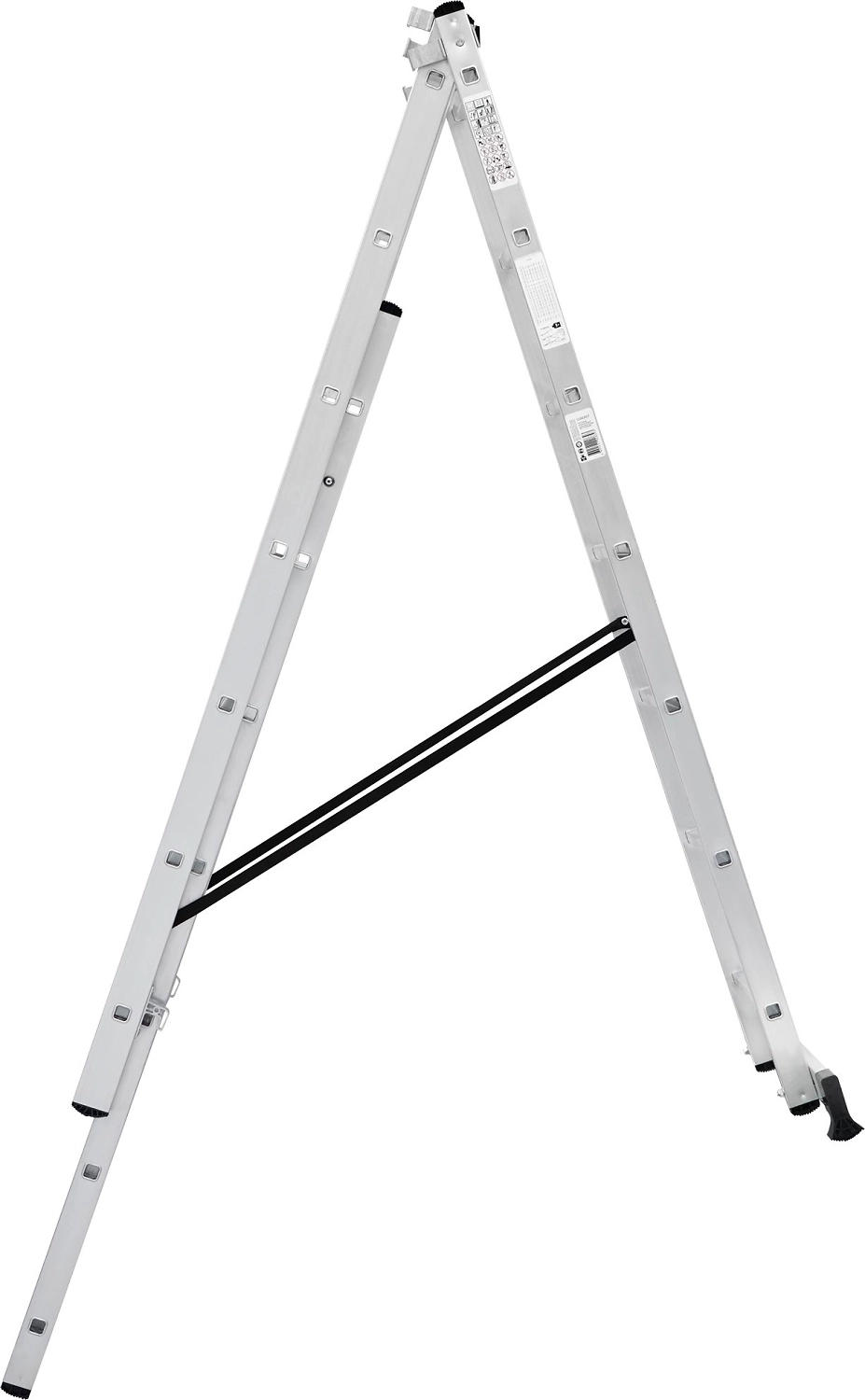 Алюминиевая раскладная трёхсекционная лестница 3х7 ступеней стандартной серии предназначена для бытовых работ.