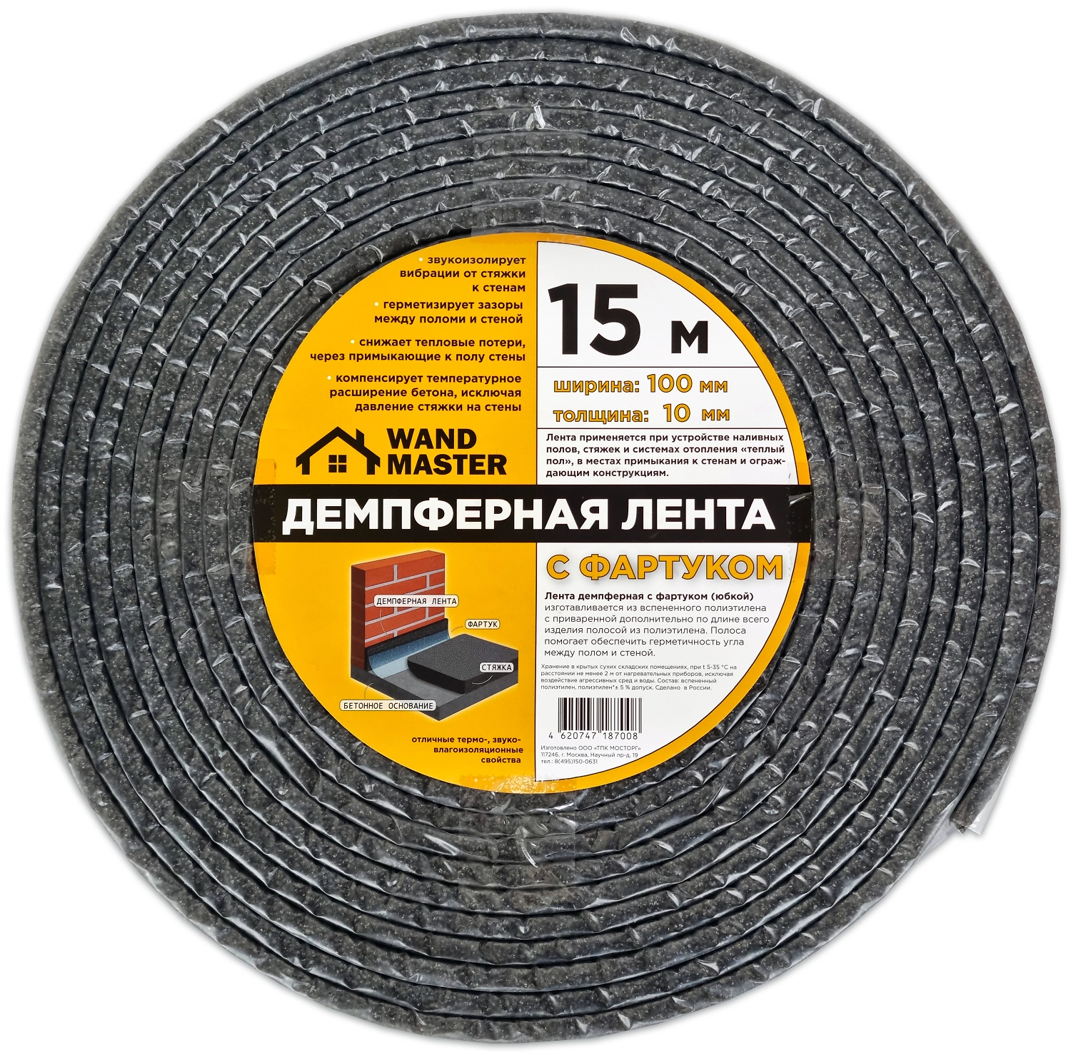 Кромочная демпферная лента Wandmaster 100x15000x100 мм серая