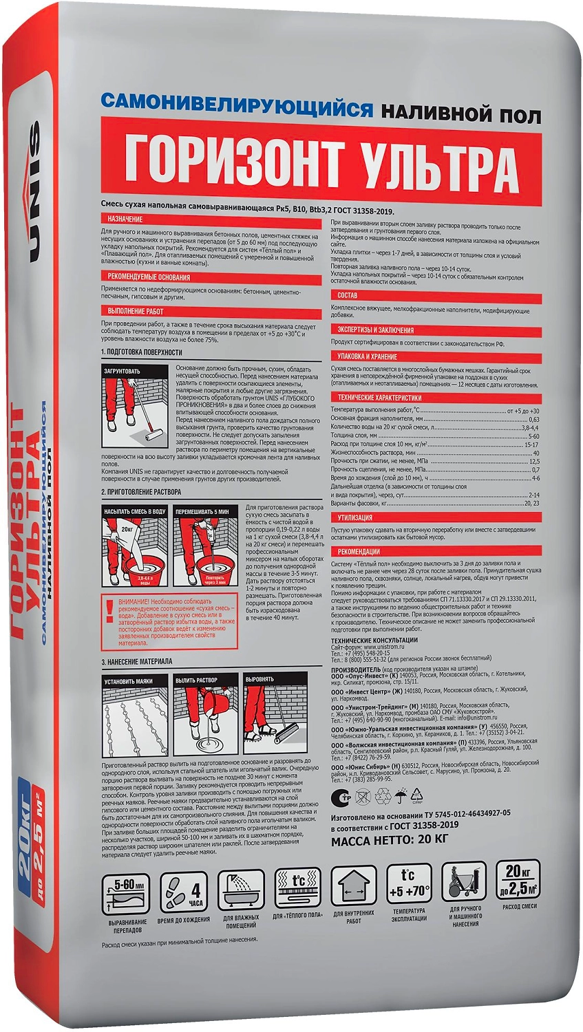 Наливной пол цементный UNIS Горизонт Ультра 20 кг