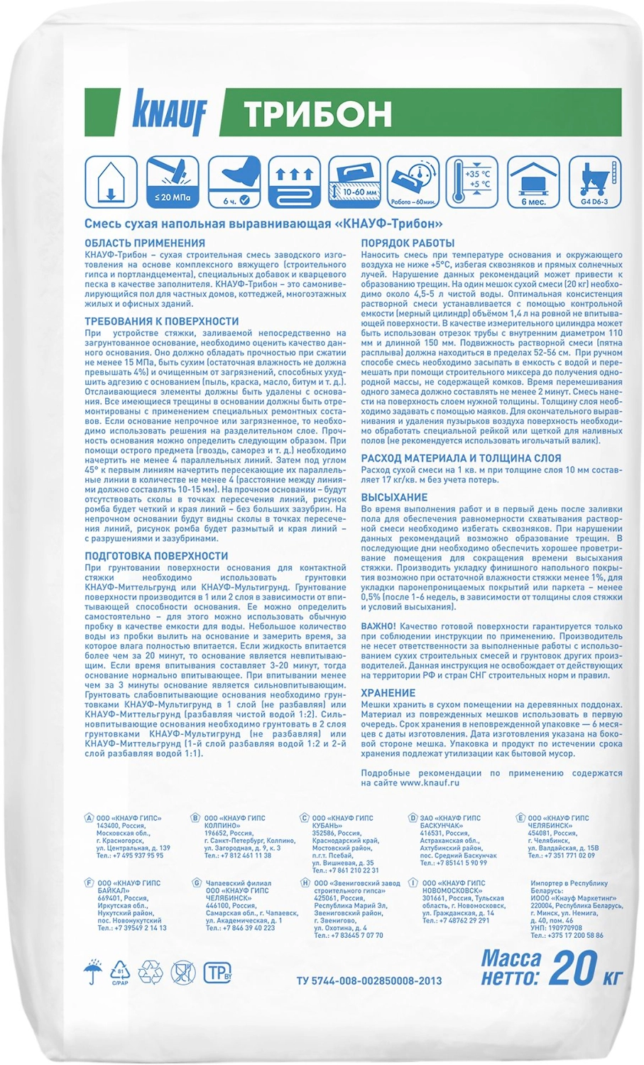 Наливной пол гипсовый KNAUF Трибон 20 кг