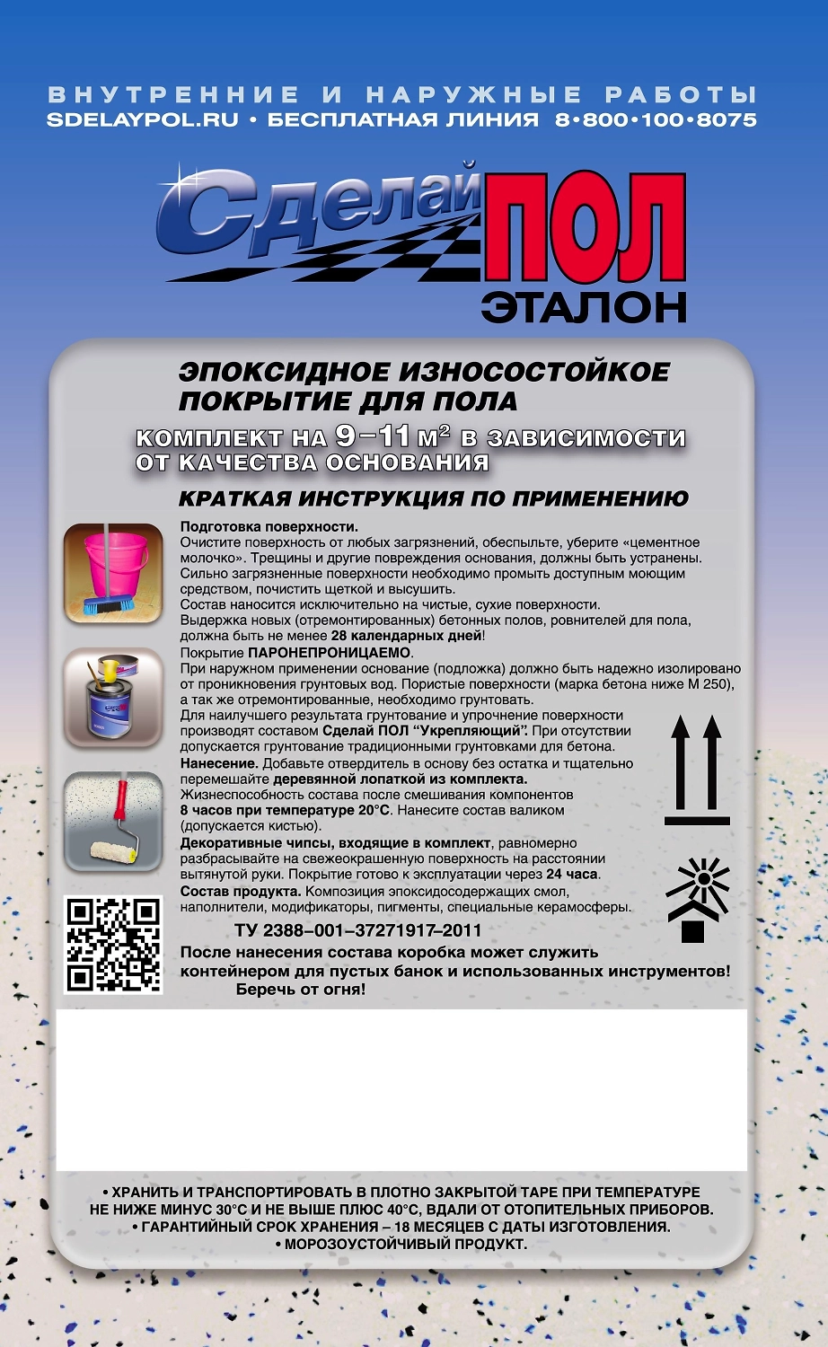 "Сделай ПОЛ Эталон" - защитный полимерный состав на эпоксидной основе, образует износостойкое, декоративное и долговечное покрытие, а также придает полу антистатические и антискользящие свойства.