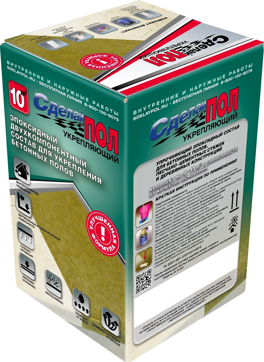 "Сделай ПОЛ Укрепляющий" - упрочняющий эпоксидный состав, предназначен для поверхностного укрепления бетонов, цементно-песчаных стяжек и других минеральных оснований (без образования или с частичным