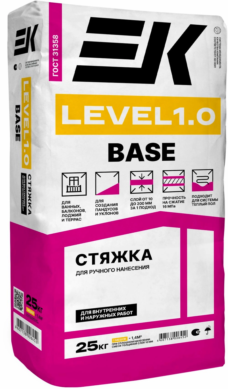 Подходит для создания пандусов и уклонов при соблюдении СНиП 35-01-2001. Стяжка ЕК level 1.0. также применяется под укладку керамической плитки, плит из натурального и искусственного камня, керамогранита. Смесь пригодна для использования в системе "теплый пол".