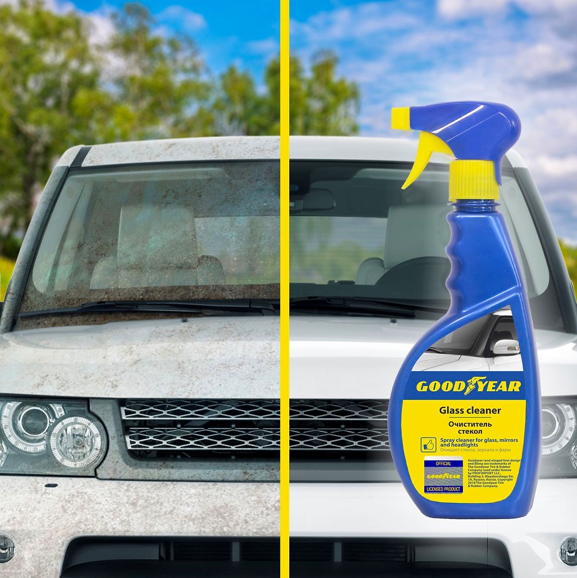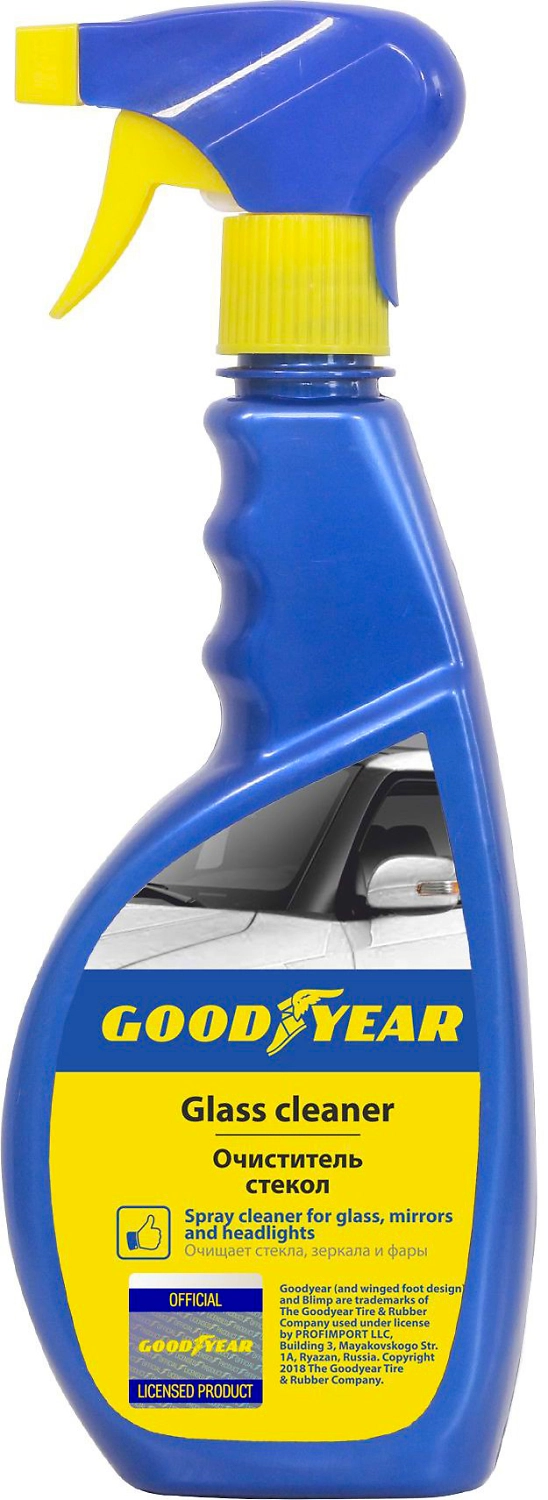 - Очиститель стекол от Goodyear позволяет быстро и эффективно удалить с поверхности стекол, зеркал и фар следы насекомых и другие загрязнения. Улучшает видимость и повышает безопасность вождения. Борется с никотиновыми отложениями на внутренней поверхности стекла.