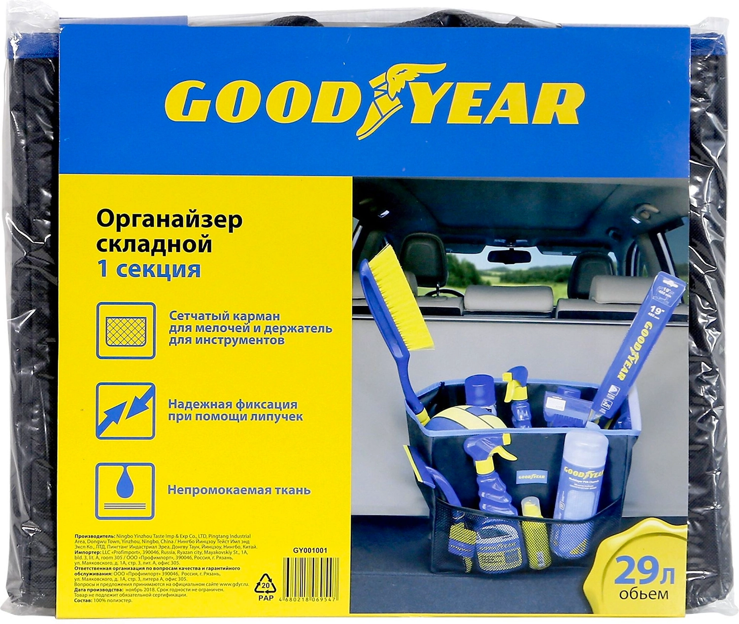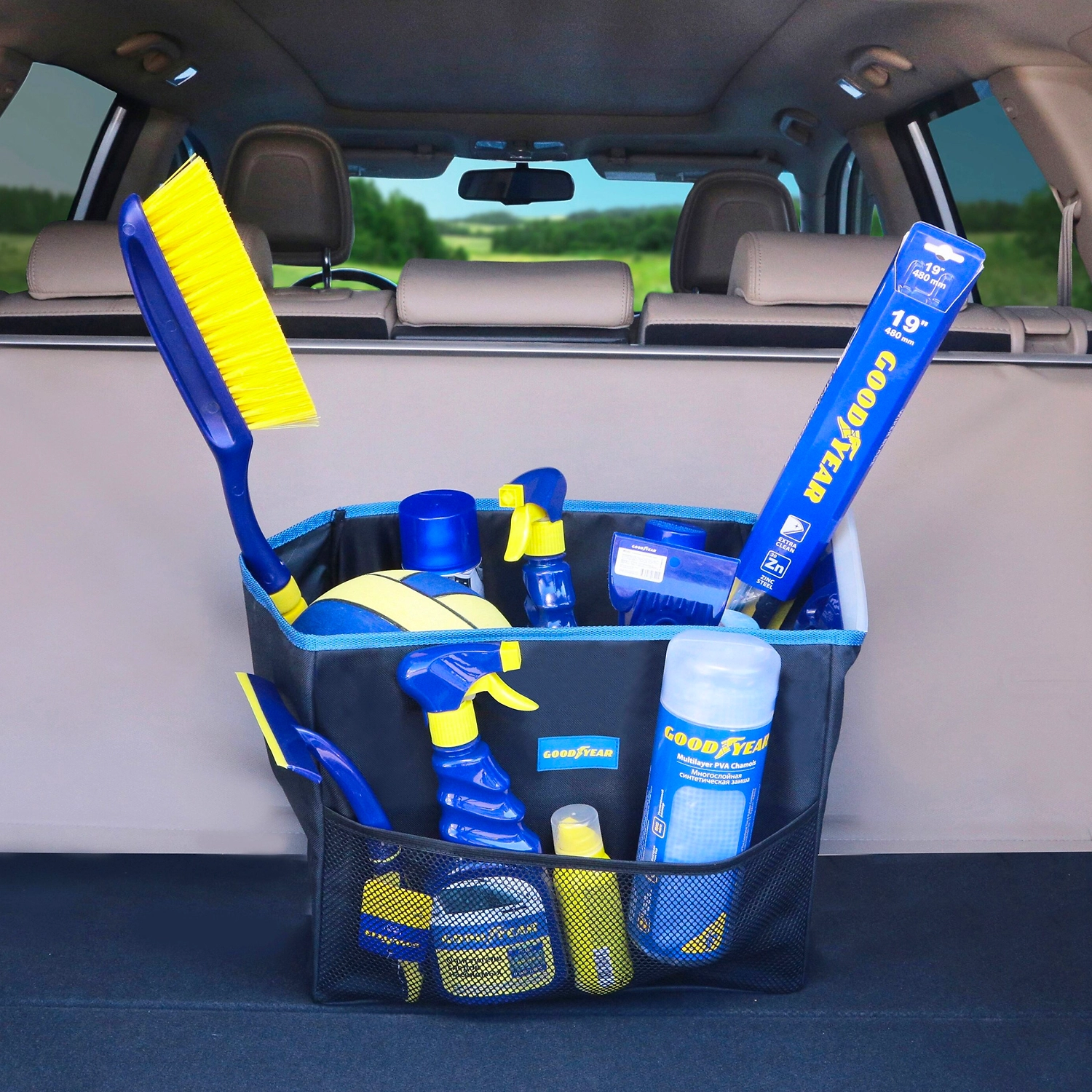 Органайзер в багажник GOODYEAR помогает эффективно использовать пространство и аккуратно хранить необходимые для водителя предметы.